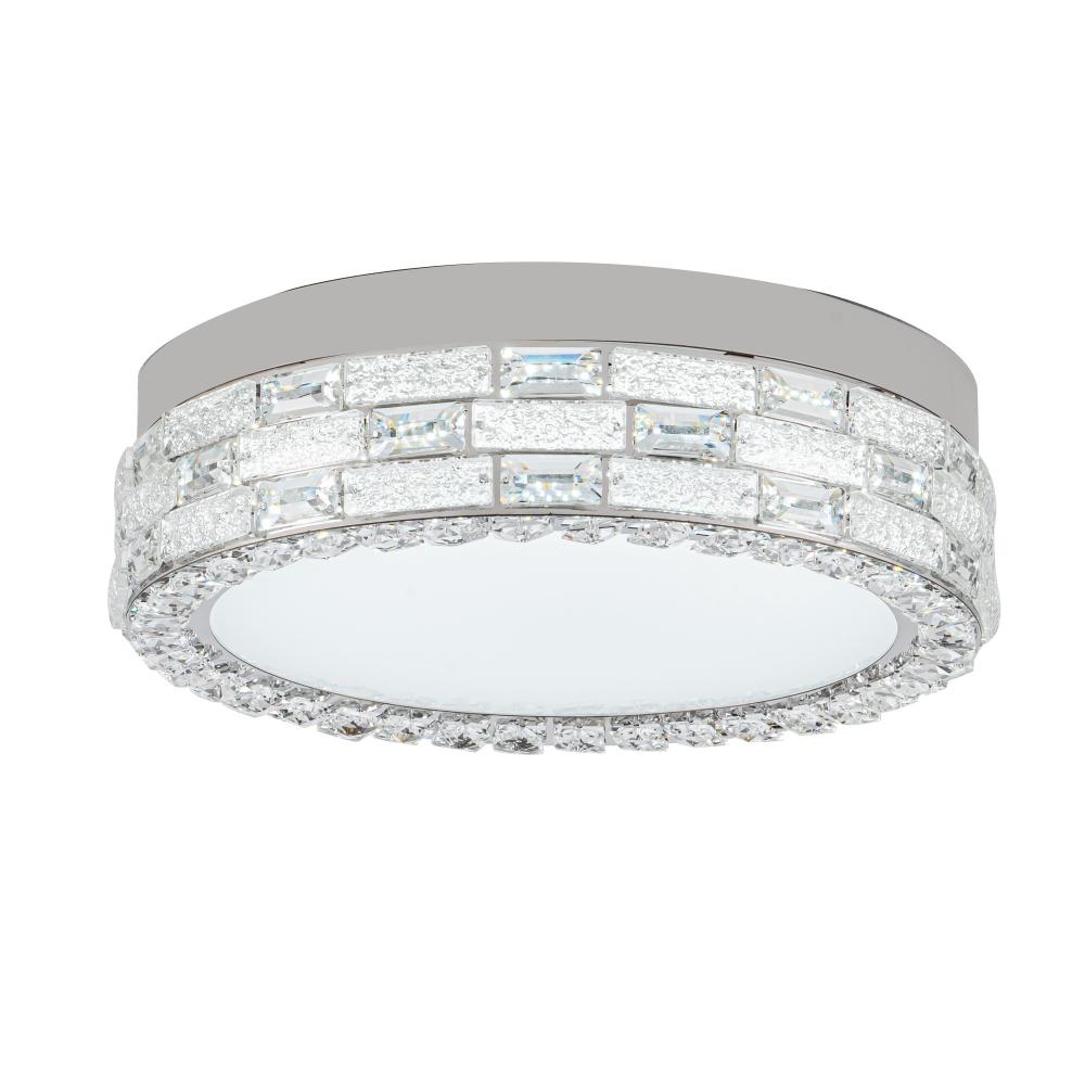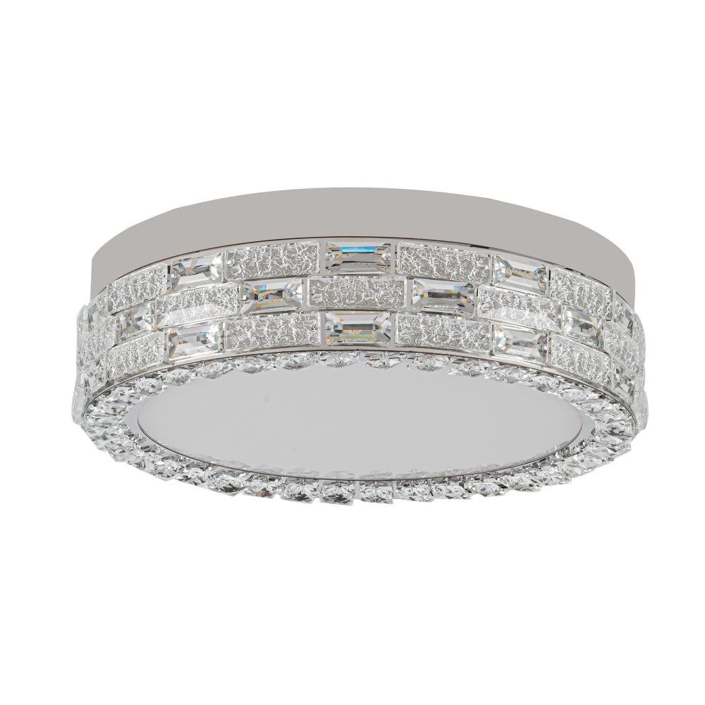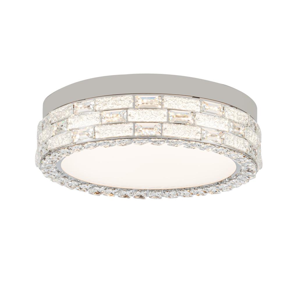 Glistening like a crown of starlight, this LED crystal flushmount from the “Elegance” collection offers a breathtaking harmony of luxury and functionality. Its polished nickel frame embraces a dazzling array of crystals, while the 3CCT switch allows you to tailor the ambiance with warm, neutral, or cool light (3K, 4K, 5K). This model has a glass bottom lens.