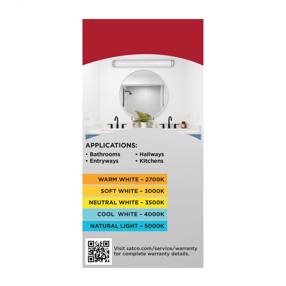 The SATCO NUVO Glamour and Crispo LED collections offer sleek, sophisticated lighting with 5 CCT selectable technology (2700K–5000K) and 90 CRI illumination. The Crispo Collection, available in White, includes 25-inch and 49-inch vanity fixtures and a wa