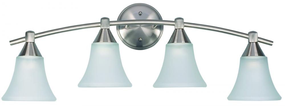 The Grace 4 Light Vanity, Pewter Finish captures the spirit of art deco flair. A stunning piece that combines Brushed Pewter and User Replaceable Bulb to create an unforgettable ambiance.