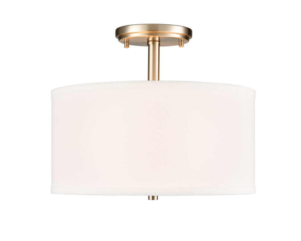 The Guyton Family of semi-flush and flush-mount lighting is defined by the crisp, white fabric shades, providing a warm and diffused effect. These fixtures are the perfect choice for an understated and polished design statement in any interior scheme, from ultra-modern to Art Deco. Whether selecting the matte black, brushed nickel, or modern gold finish, these 2-light fixtures provide the perfect glow for the foyer, hallway, or bedroom.