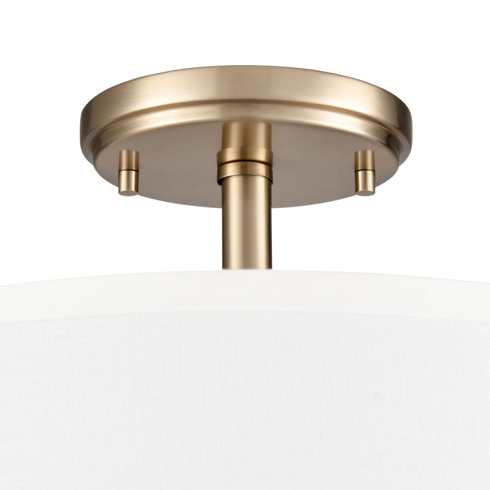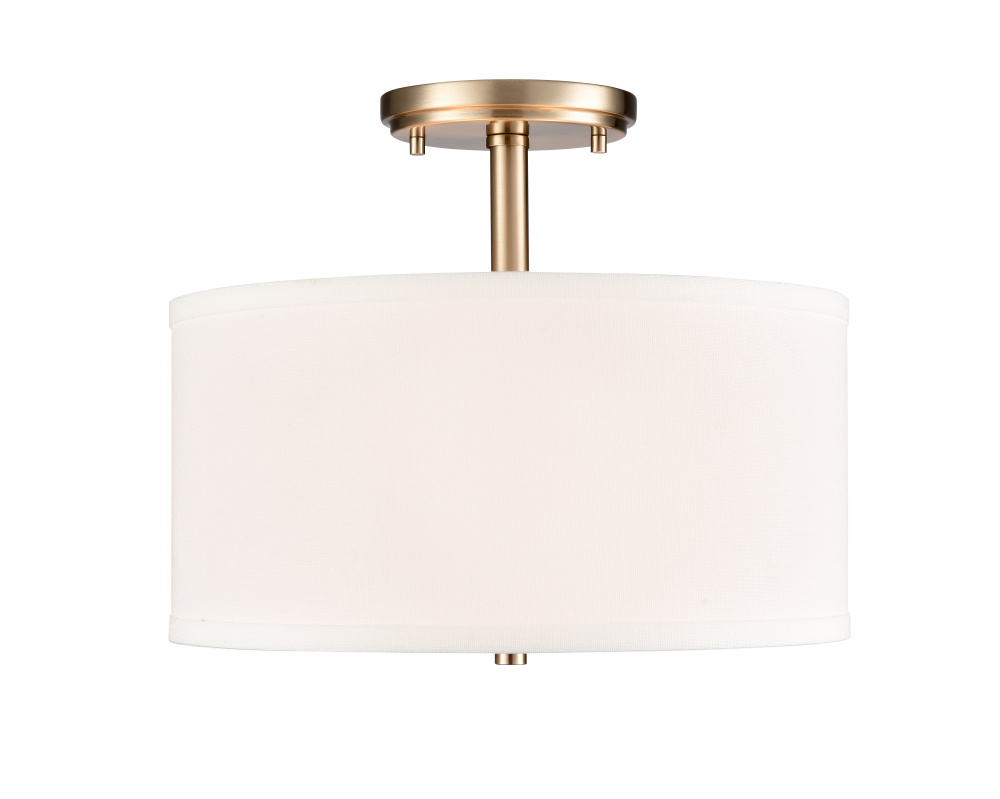 The Guyton Family of semi-flush and flush-mount lighting is defined by the crisp, white fabric shades, providing a warm and diffused effect. These fixtures are the perfect choice for an understated and polished design statement in any interior scheme, from ultra-modern to Art Deco. Whether selecting the matte black, brushed nickel, or modern gold finish, these 2-light fixtures provide the perfect glow for the foyer, hallway, or bedroom.