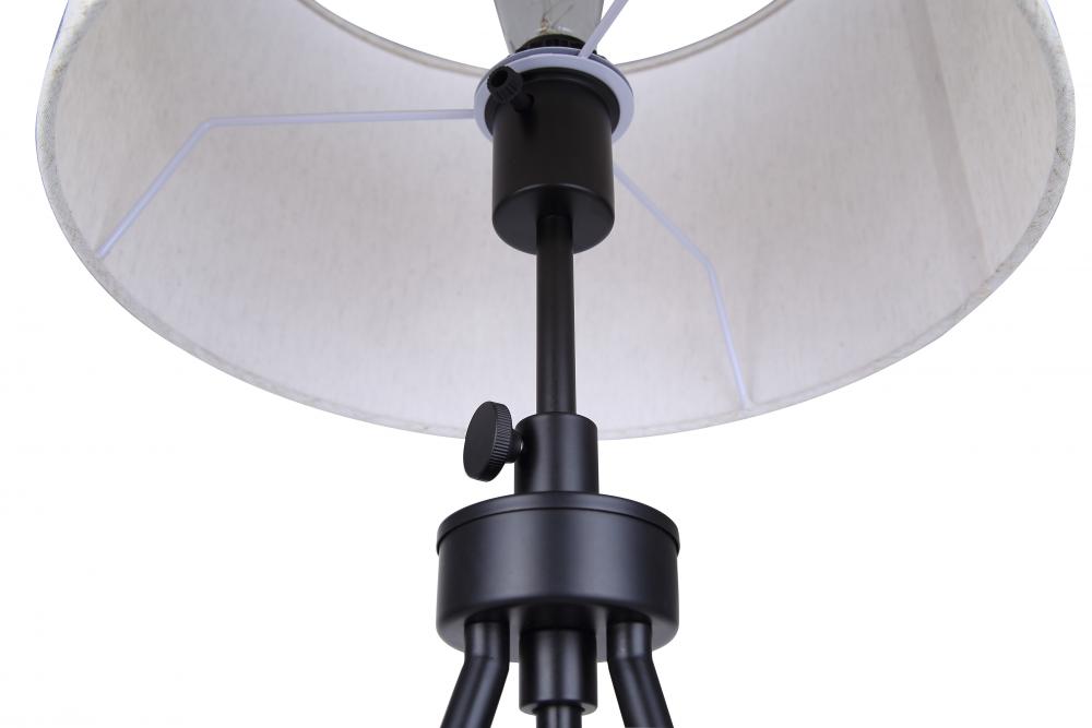 Enhance your living space with our stunning table lamp, featuring a classic natural fabric shade and sleek matte black tripod legs. This versatile lamp measures 13" wide and offers adjustable height from 22 3/4" to 27 1/4", making it perfect for any setting. It takes one 100W Type A bulb, providing ample illumination for various needs. The tri-light switch on the socket provides customizable lighting options, ideal for creating the perfect ambiance. Whether used as accent lighting next to your bed, to illuminate hallways, or to add a modern touch to your decor, this lamp is a stylish and practical addition. Rated for dry locations only, this modern yet classic lamp seamlessly blends style and functionality.