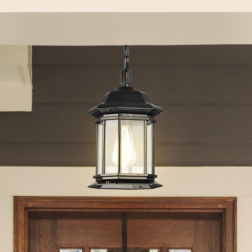 Hopkins Collection Outdoor 12 inch Hanging Lantern; Matte Black Finish with Clear Glass