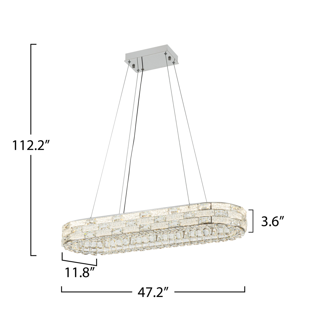 Glistening like a crown of starlight, this LED crystal linear island chandelier from the “Elegance” collection offers a breathtaking harmony of luxury and functionality. Its polished nickel frame embraces a dazzling array of crystals, while the 3CCT switch allows you to tailor the ambiance with warm, neutral, or cool light (3K, 4K, 5K). Suspended gracefully on aircraft-type cables with an intuitive “push-pin” system, it promises both beauty and effortless adjustment for any setting.