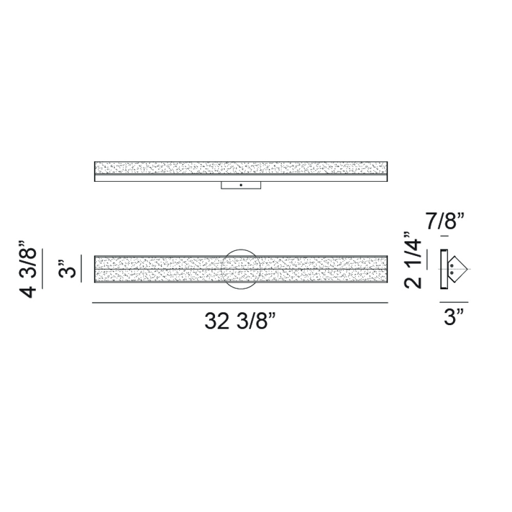 32.38"W x 3"H x 2.25"E