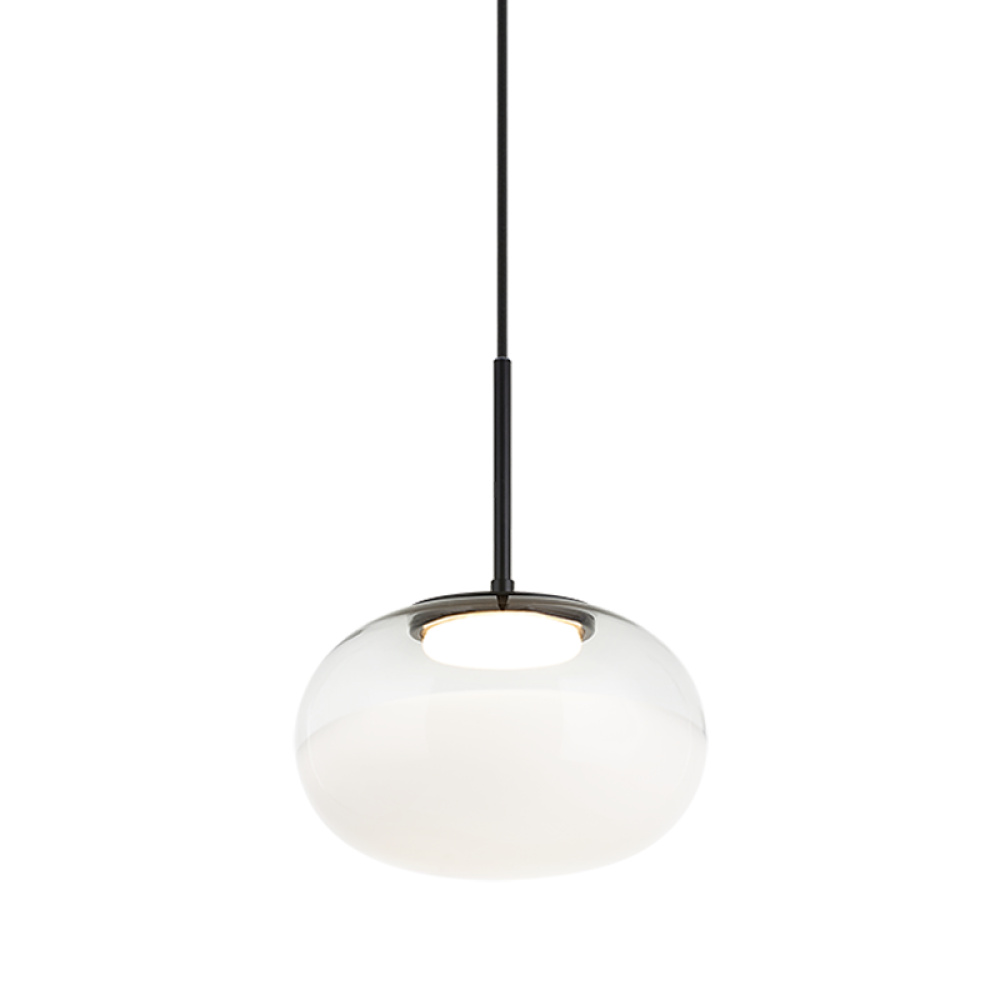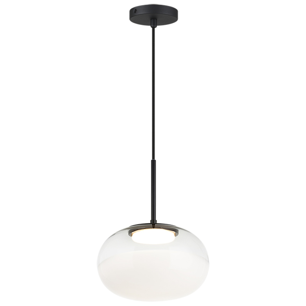 Jayce The two tone hand blown glass creates an artisan feel to a classic pendant. The clear glass dipped in white and then blown creates a diffused bottom half resulting in a softer LED glow. The Jayce, available in 2 sizes will create a serene mood in any space. *Features a 3CCT to adjust the 3 selectable colour temperature