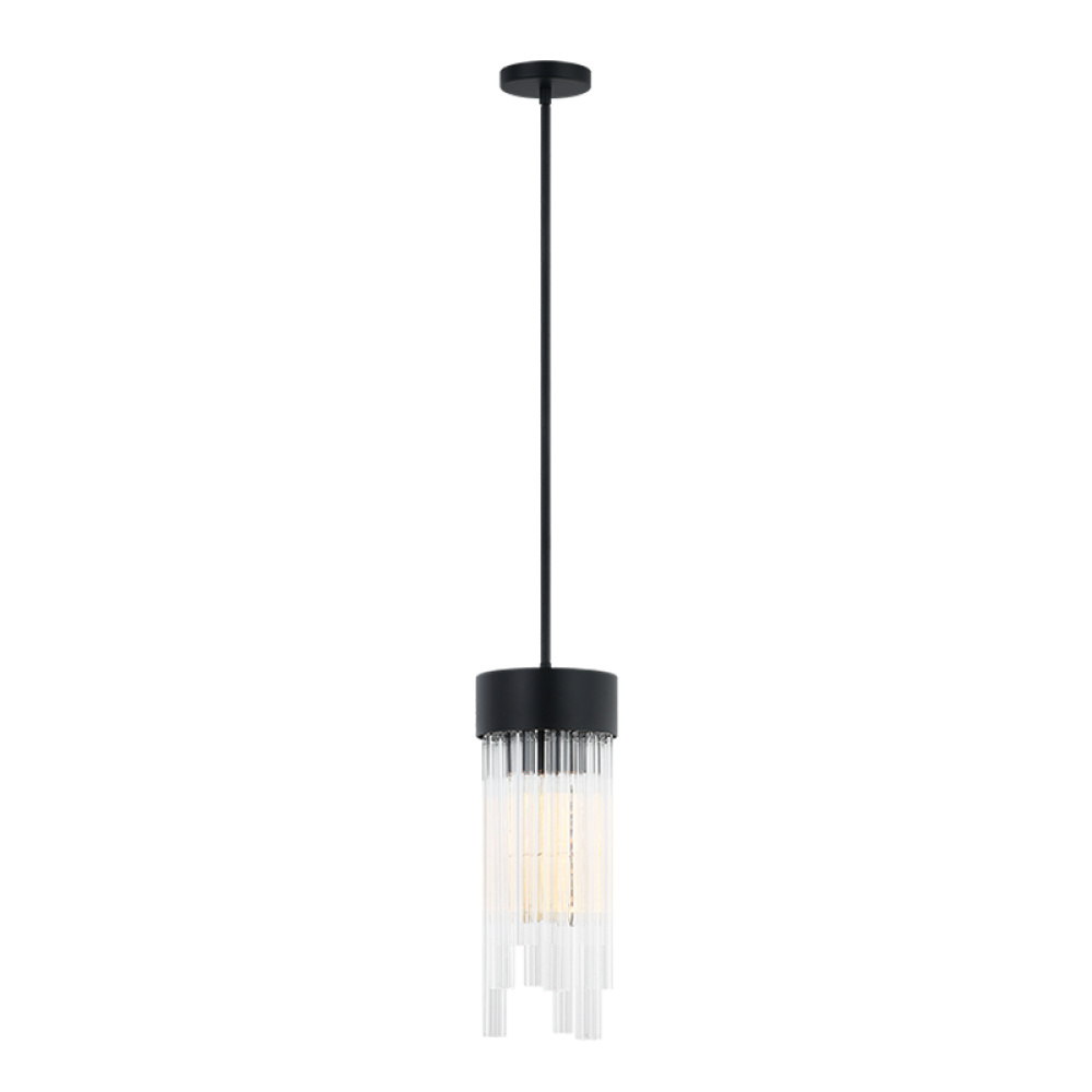 The Kellan collection is an E26 bulb surrounded by ribbed glass in offset heights to create an intricate fixture. This stunning fixture comes in a pendant and wall sconce and is available in either Aged Gold Brass or Matte Black. Will add an opulent touch to any room.