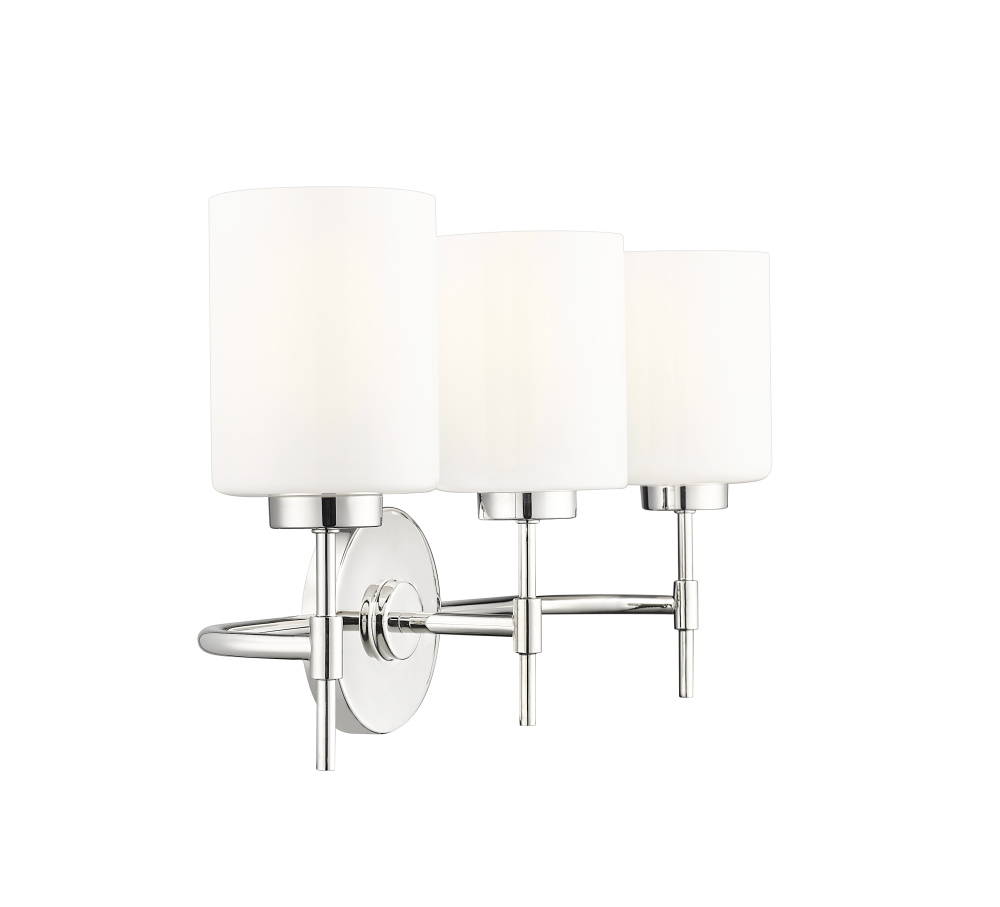 Vanity lighting is infused with pure elegance in the Keylee Family of 1-light sconces and 2-, 3-, and 4-light fixtures. Finished in polished nickel, vintage brass, or matte black, the round backplates and gently arcing lines of the light bars give the vanity fixtures a light and delicate silhouette, while the sconces radiate a graceful simplicity. It’s the perfect design solution for any interior plan, from Regency Revival to modern transitional.