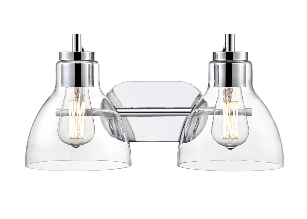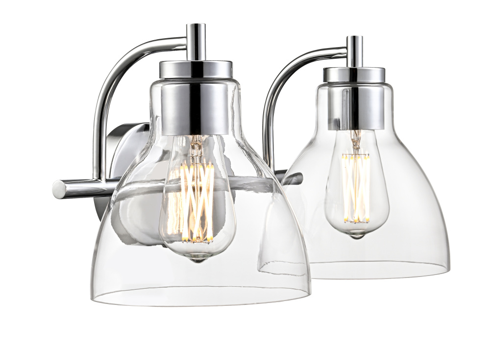 Refined simplicity is the hallmark of the Knightsdale Family of vanity lighting. Graceful bell-shaped clear glass shades set an elegant tone and provide a crisp clear lighting effect perfect for any bath. The minimalistic hardware strikes the perfect balance with the shades and is finished in matte black, chrome, or modern gold. Available as 1, 2 and 3-light options, these fixtures create a sleek and understated profile.