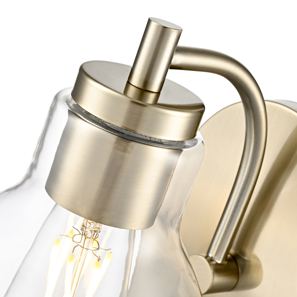 Refined simplicity is the hallmark of the Knightsdale Family of vanity lighting. Graceful bell-shaped clear glass shades set an elegant tone and provide a crisp clear lighting effect perfect for any bath. The minimalistic hardware strikes the perfect balance with the shades and is finished in matte black, chrome, or modern gold. Available as 1, 2 and 3-light options, these fixtures create a sleek and understated profile.