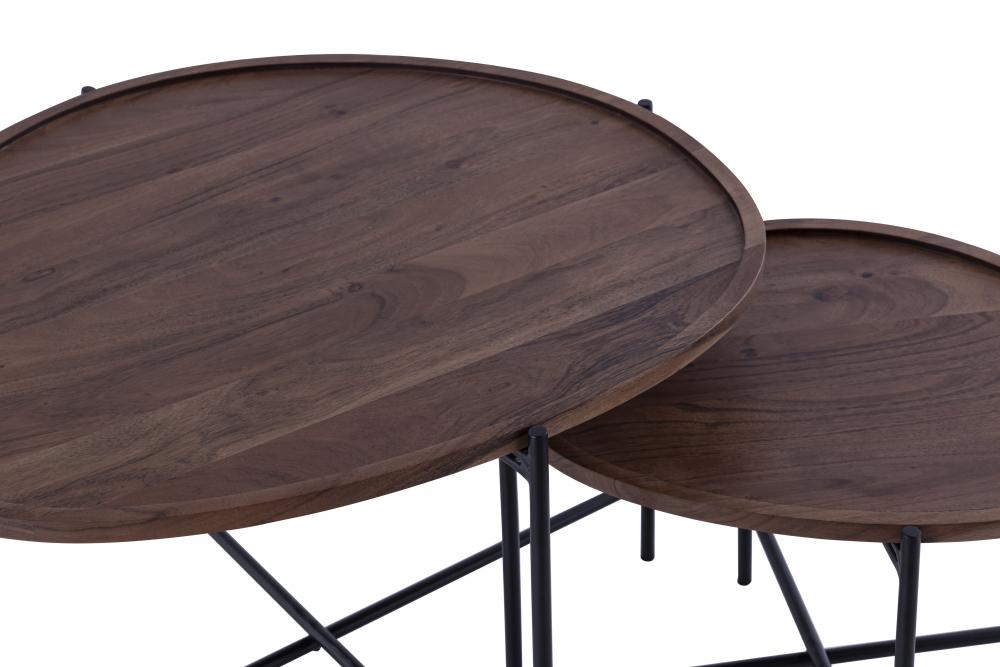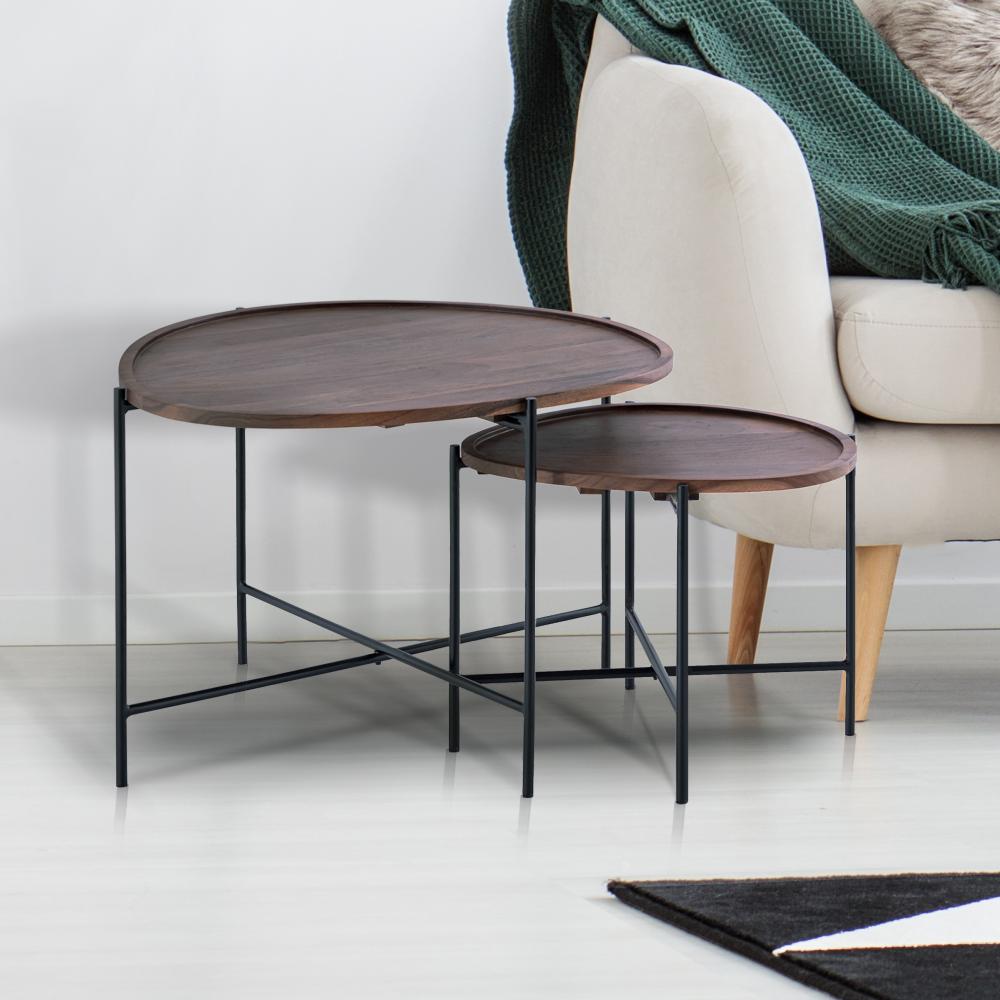 Transform your living space with the Koda Walnut Table Set, a stunning blend of mid-century modern design and contemporary elegance. This versatile table set features a pair of beautifully crafted tables, each with a rich walnut finish that exudes warmth and sophistication. The sleek iron frames provide a minimalist touch while ensuring durability and stability. Perfect for any living room, bedroom, or lounge area, these tables can be used together or separately to create a cohesive look that complements any décor.The larger table measures 26 inches in length, 23 inches in width, and 17.5 inches in height, providing ample space for your favorite books, a stylish lamp, or decorative accents. The smaller table, measuring 17.75 inches in length, 17.75 inches in width, and 14 inches in height, is perfect for holding drinks, snacks, or a cozy plant. Both tables feature a smooth, rounded edge for a touch of elegance and safety, making them ideal for households with children or pets.Elevate your home with the Koda Walnut Table Set – where timeless design meets modern functionality. Whether you’re looking to add a stylish accent to your living space or seeking a functional solution for your everyday needs, this table set is the perfect choice. Order now and enjoy the perfect combination of form and function with the Koda Walnut Table Set.