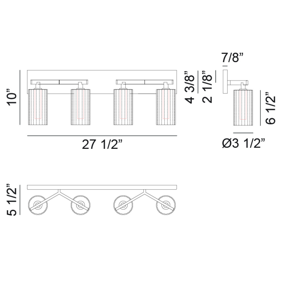 27.5"W x 4.38"H x 0.88"E