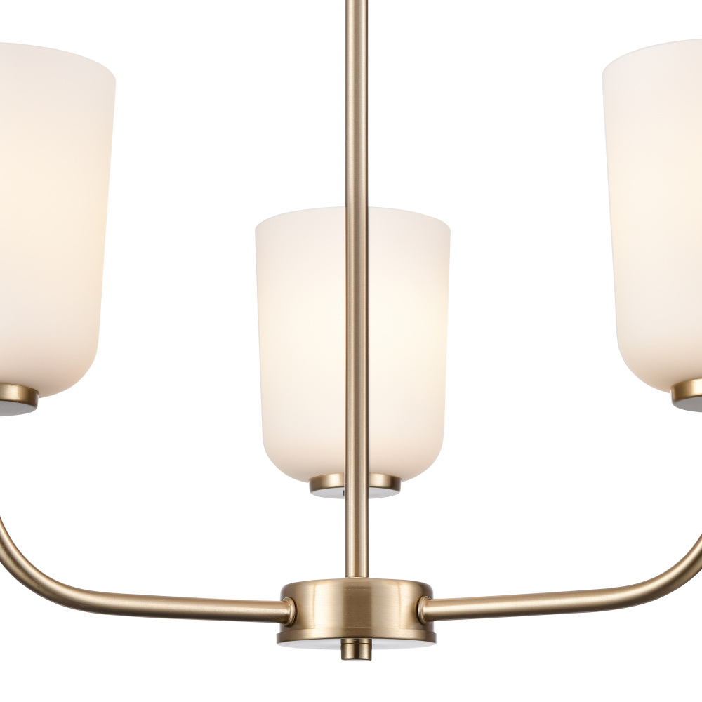 The Laphia Family features sleek lines, a graceful profile, and brilliant white, bell-shaped glass shades creating an ambient glow. The Family is available as sconce, chandelier, pendant, mini-pendant, semi-flush mount, flush mount, and an excellent vanity task light. Perfect for any interior plan from Craftsmen to modern farmhouse, these fixtures are finished in stylish brushed nickel, matte black, or modern gold.