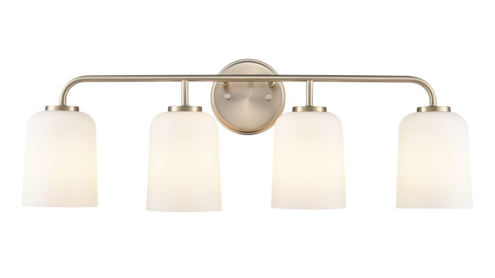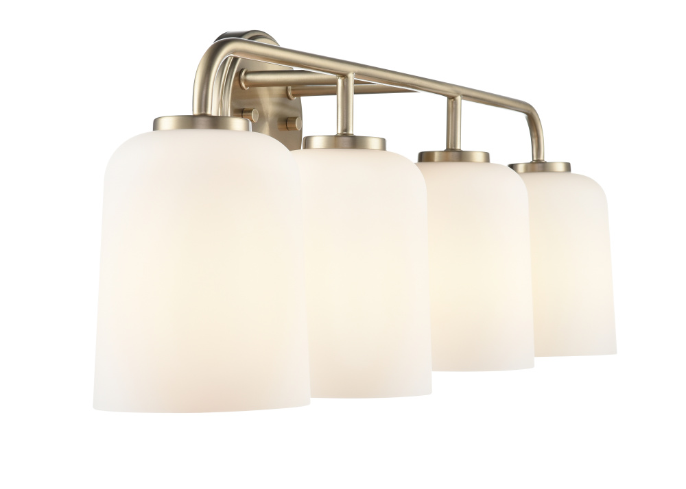 The Laphia Family features sleek lines, a graceful profile, and brilliant white, bell-shaped glass shades creating an ambient glow. The Family is available as sconce, chandelier, pendant, mini-pendant, semi-flush mount, flush mount, and an excellent vanity task light. Perfect for any interior plan from Craftsmen to modern farmhouse, these fixtures are finished in stylish brushed nickel, matte black, or modern gold.
