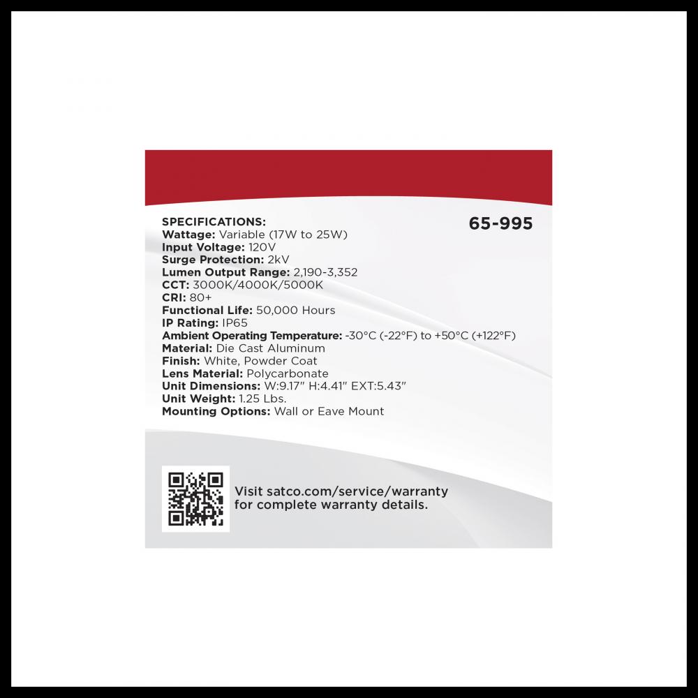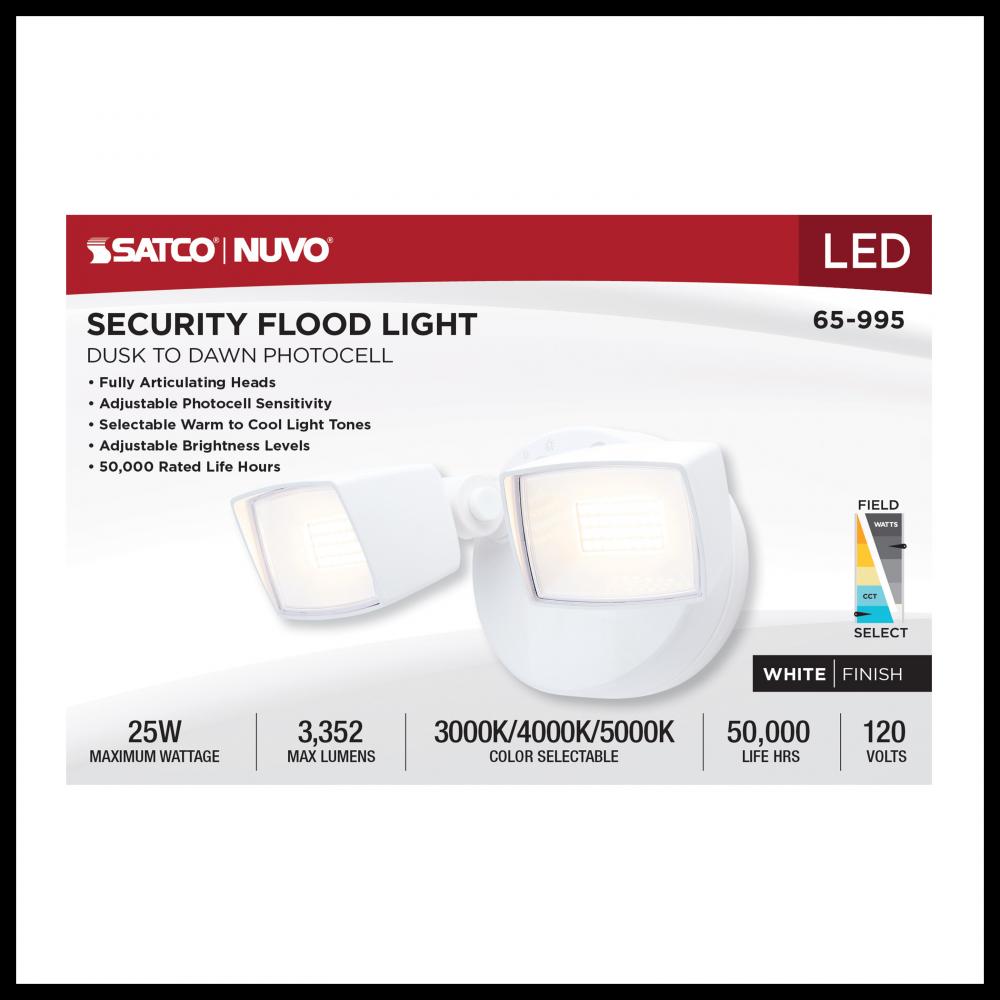 The SATCO NUVO 65-995 field-selectable dual-head LED security flood light sets a new standard for reliable and versatile safety lighting. Ideal for both residential and commercial use, this fixture can be easily mounted on walls or eaves to illuminate crit
