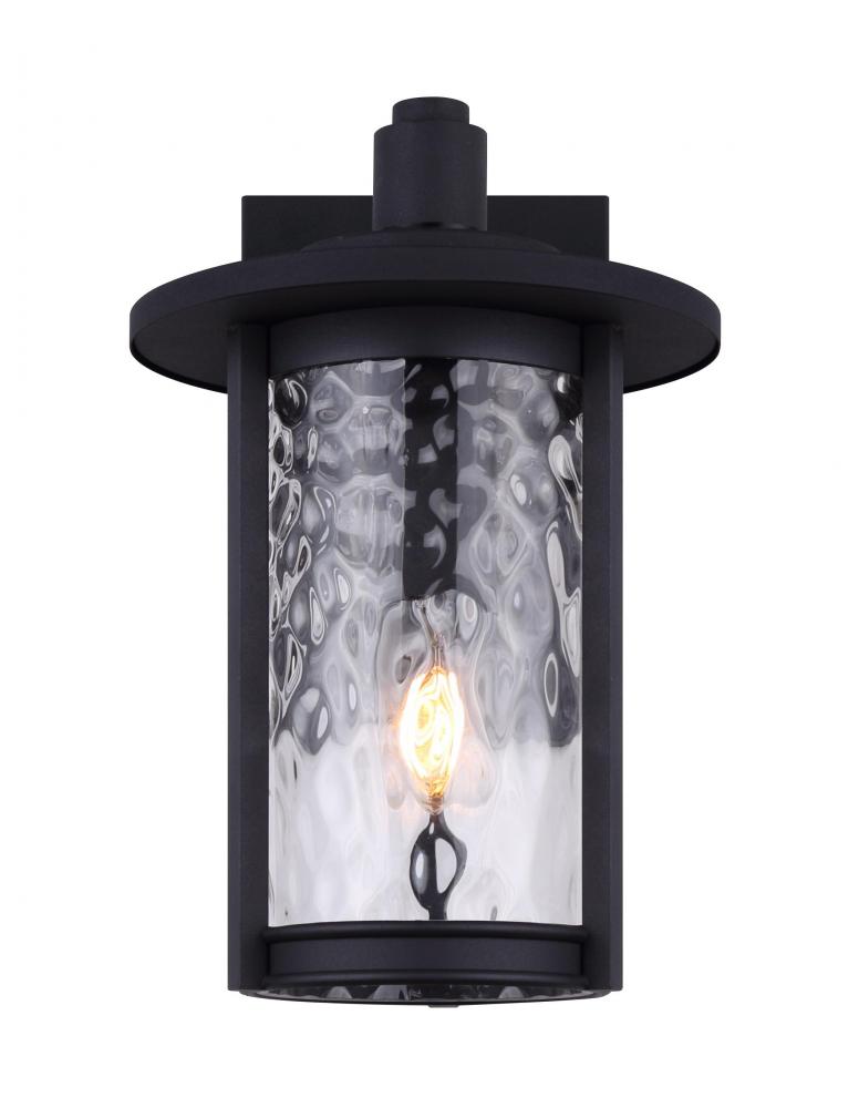The LEON IOL567BK is a one-light outdoor down light in Black (Sand) with watermark glass. It includes a B-LST45-4 bulb and measures 9.5 inches wide, 14.5 inches high, and 11.375 inches deep. Easy Connect included, this fixture is ideal for enhancing outdoor ambiance and safety.