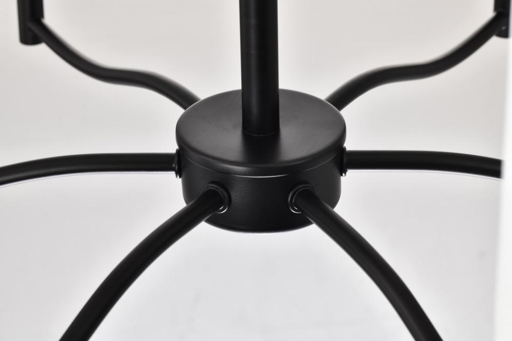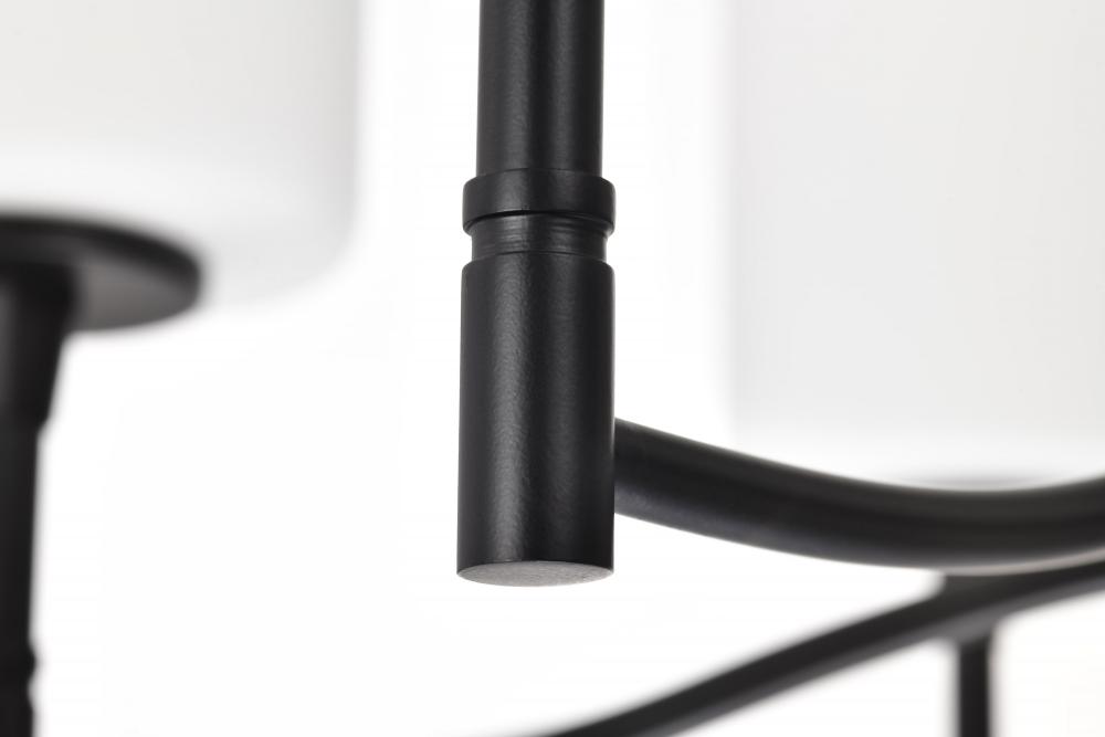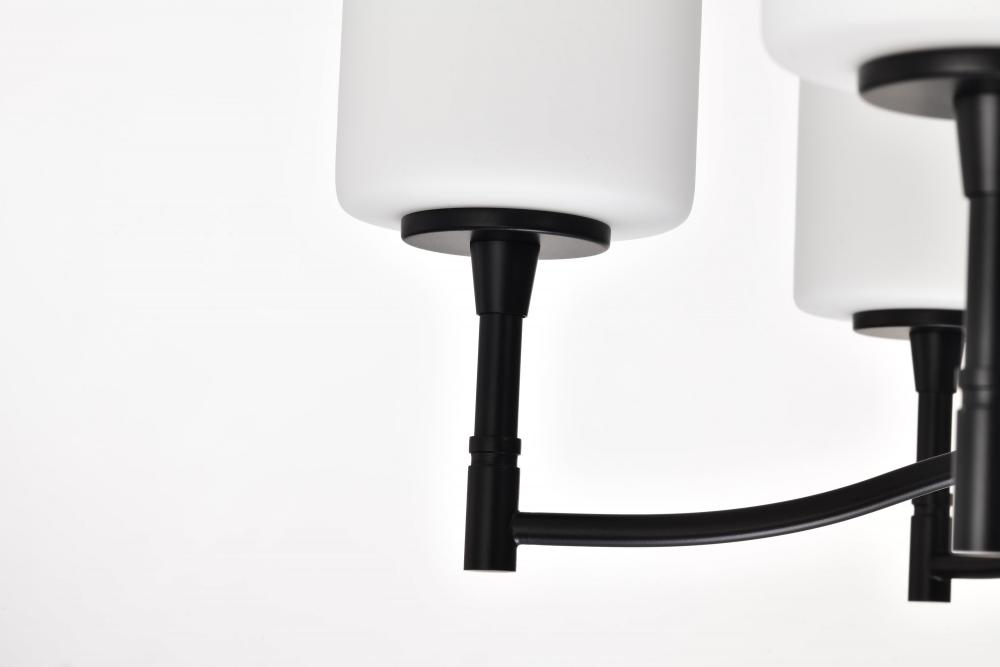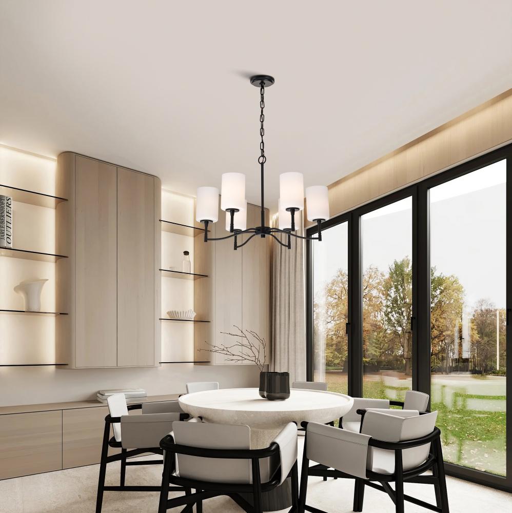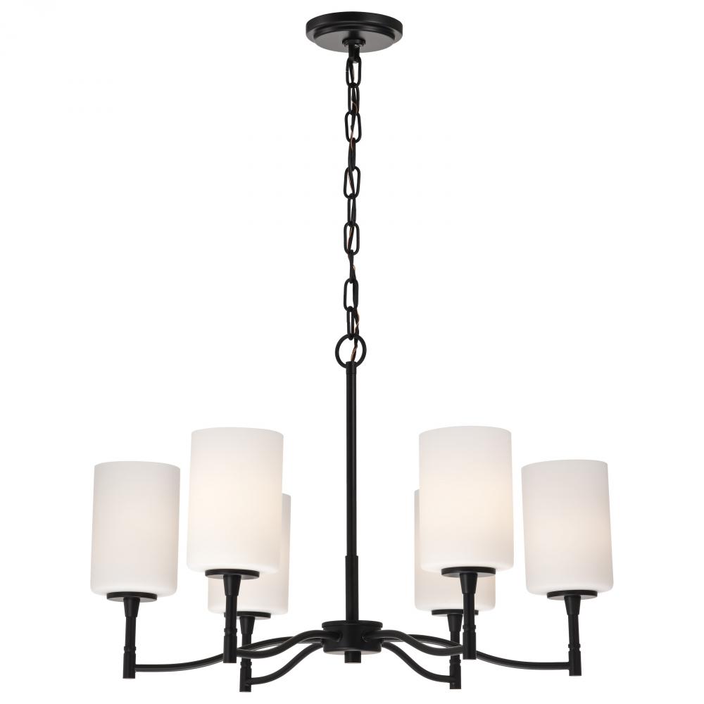 Liam; 6 Light Chandelier; Matte Black; White Opal Glass