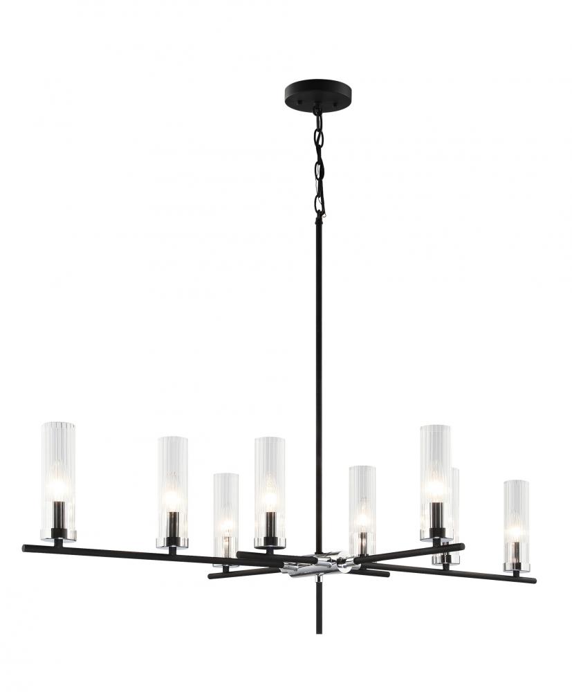 Simple yet elegant, this modern design includes a classic scalloped edge ribbed clear glass interior. The play of modern with classic design elements makes this piece timeless. A polished Chrome finish with contrasting Matte Black rod(s), Luminoso will add charm to any room. *LIGHTBULBS NOT INCLUDED