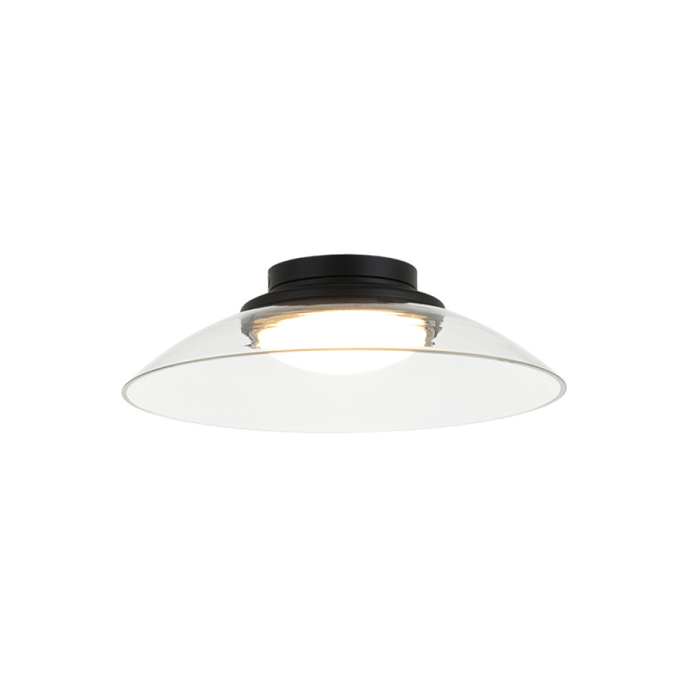 Luna The Luna is a vintage look ceiling mount with a metal base in either Aged Gold Brass or Matte Black with a classic tapered glass shade in either clear or frosted glass. At the center of the fixture is the modern twist LED in the white diffusor – available in 2 sizes. *Features a 3CCT to adjust the 3 selectable colour temperature