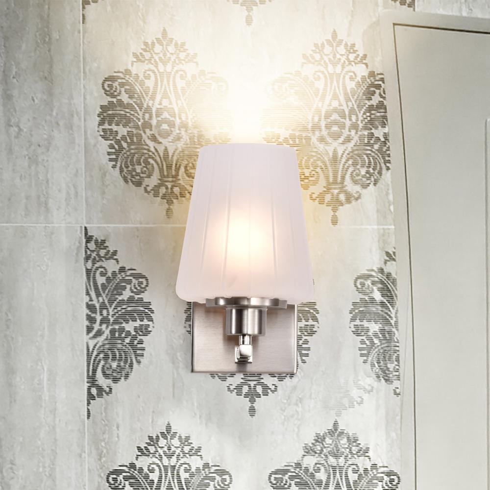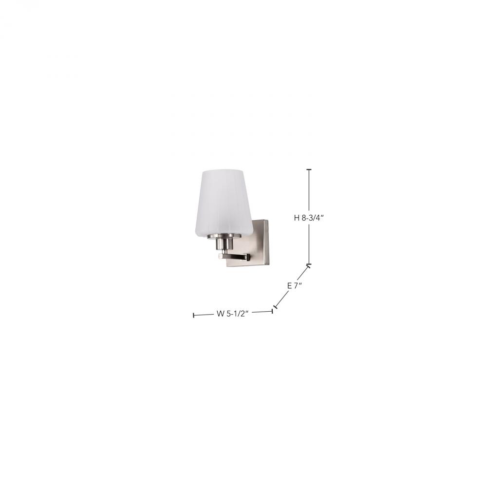 Lune; 1 Light Vanity; Brushed Nickel Finish; Etched White Glass