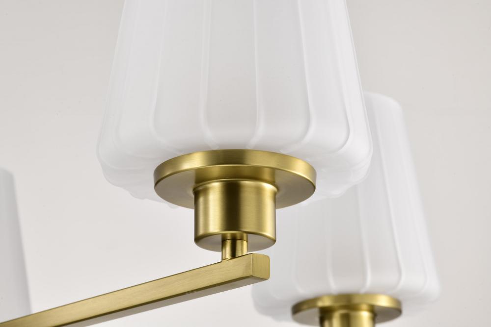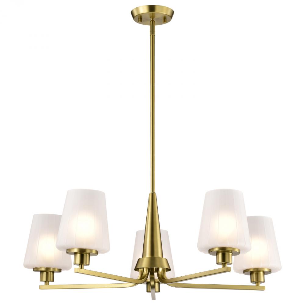 Lune; 5 Light Chandelier; Vintage Brass Finish; Etched White Glass