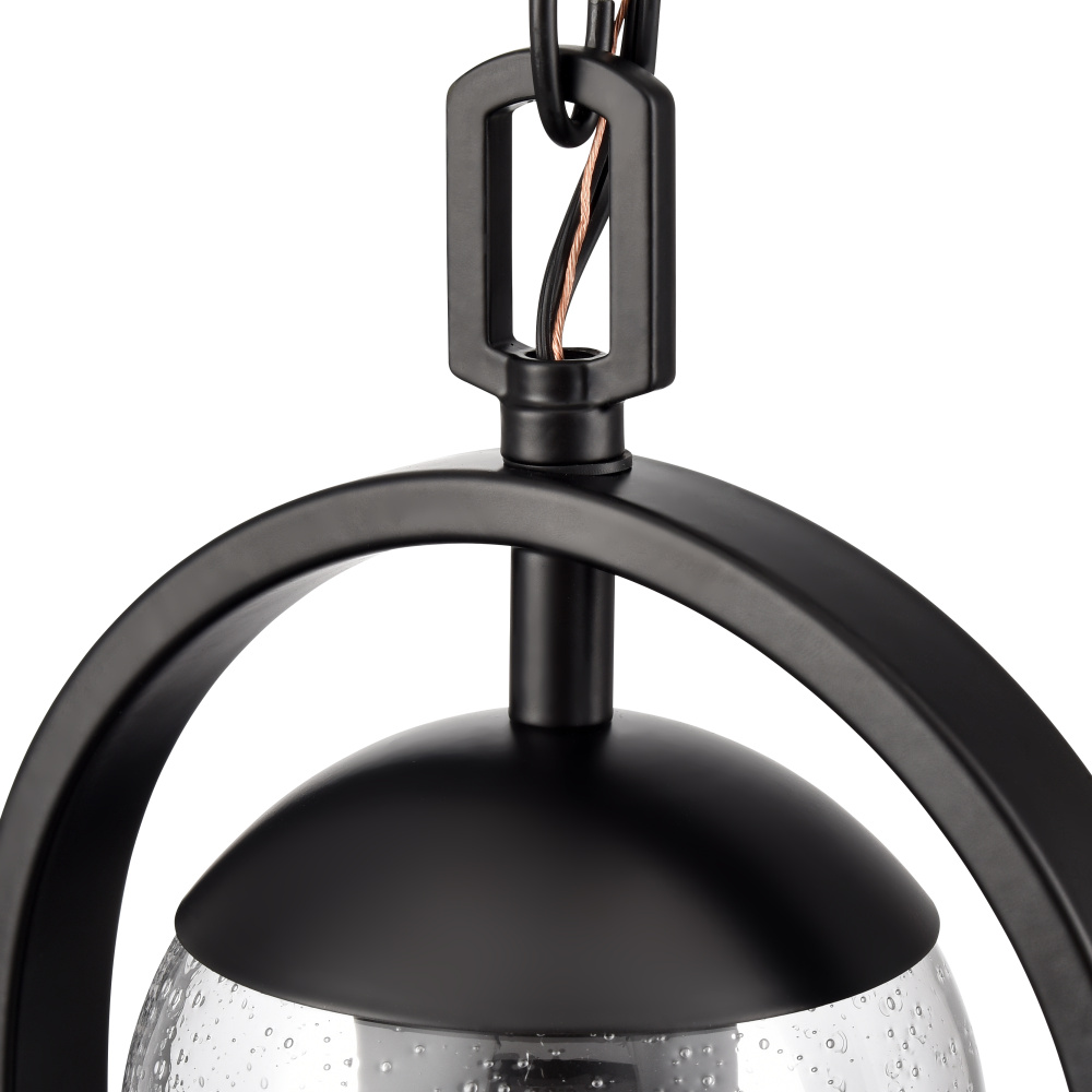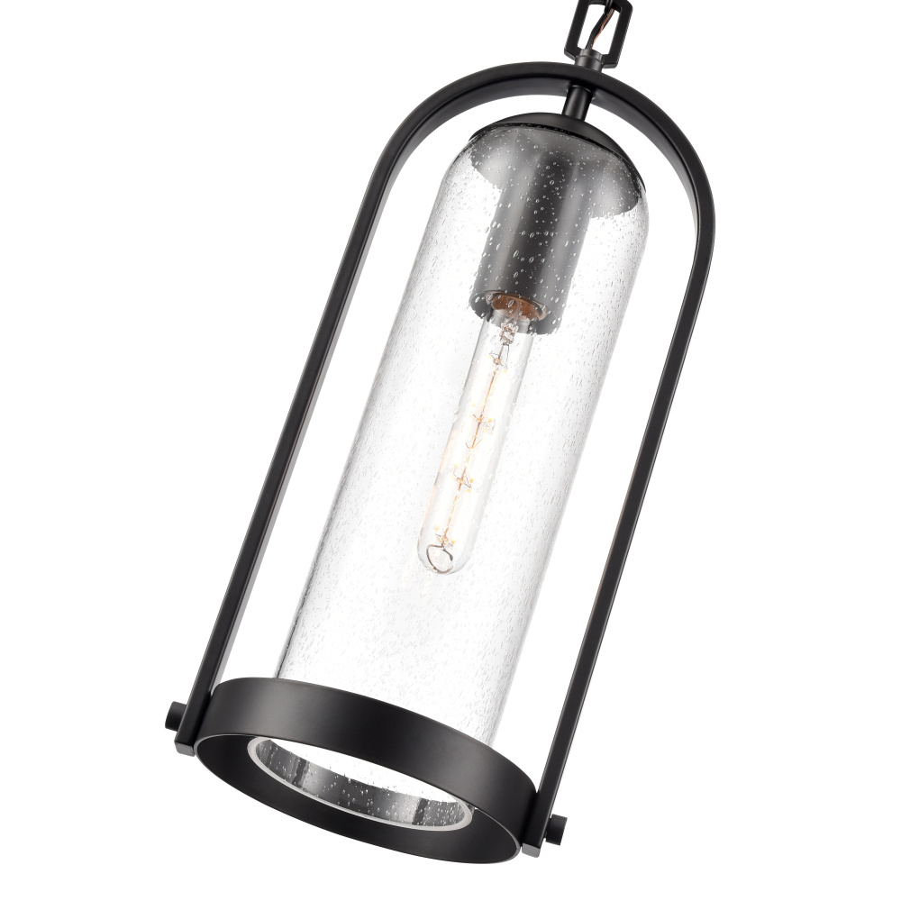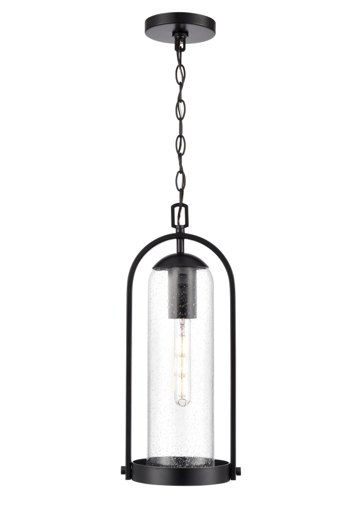 The Luxio Family of outdoor lighting is a fashionable take on the classic lantern profile. The birdcage-inspired metalwork is enhanced with modern styling and creates the perfect framing for the elongated clear-seeded glass shade. Available as 1-light sconce or 1-light hanging lantern and finished in powder coat black, these dynamic fixtures invoke the perfect look for any exterior, from ultra-modern to Mission Revival.