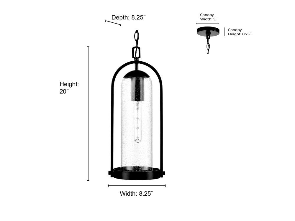 Luxio 8.25" Wide 1-Light Outdoor Hanging Lantern - Powder Coated Black