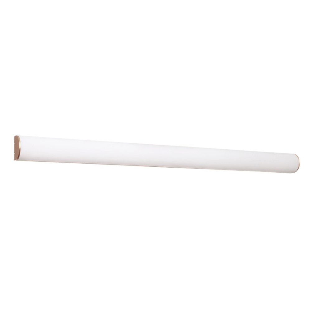 A minimal yet striking series of LED vanity comprised of a subdued metal canopy paired with a semi-cylindrical white acrylic lens. Available in 2 sizes and 2 finishes: Oxidized Grey and Oxidized Rose.