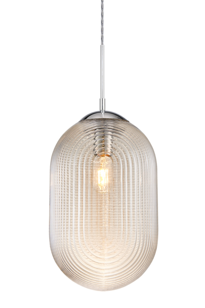 Pendant with a spiral and clean lined design in Cognac or Smoked glass would be a stunning focal point over an island or cozy lounge area. Comes in 3 styles of glass in Chrome and Matte Black canopy.