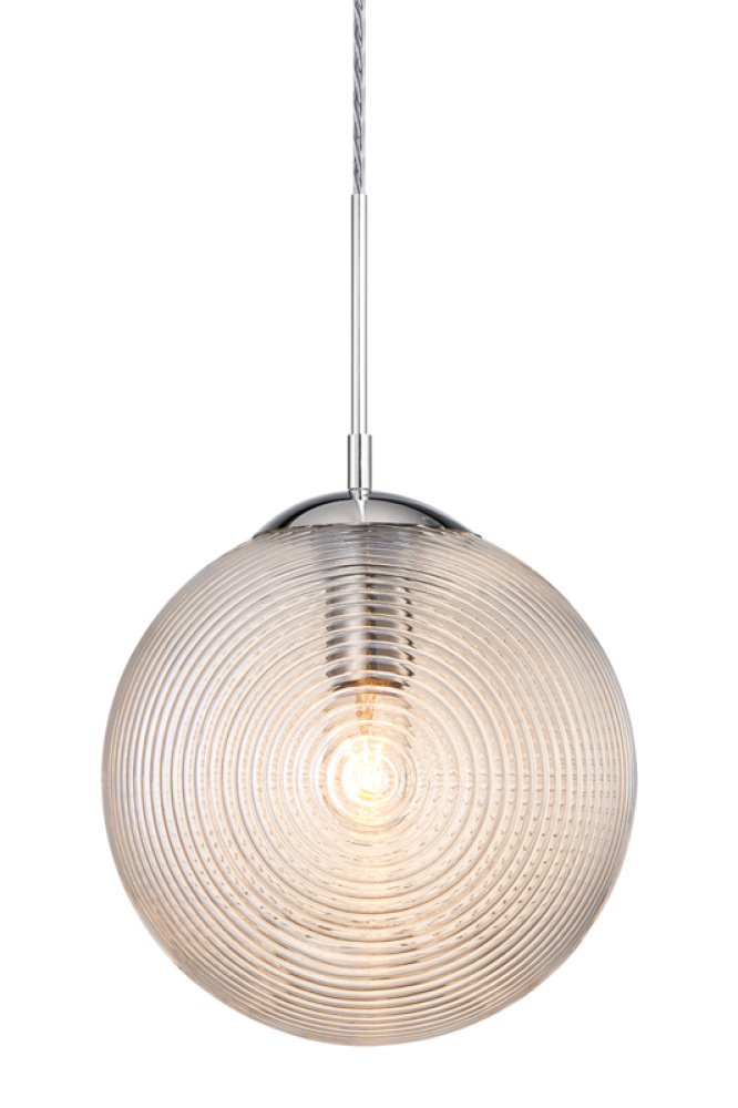 Pendant with a spiral and clean lined design in Cognac or Smoked glass would be a stunning focal point over an island or cozy lounge area. Comes in 3 styles of glass in Chrome and Matte Black canopy.