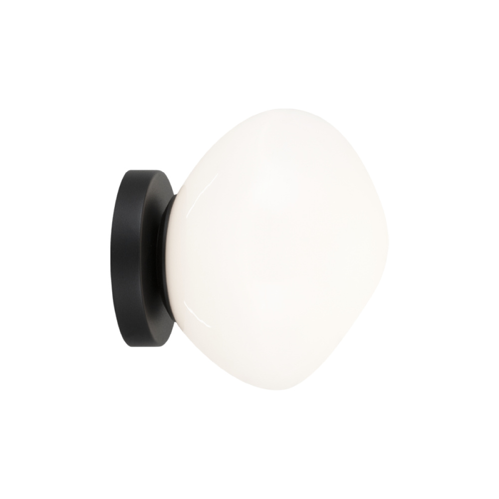 The Melotte family, traditional style but the irregular glass shape provides a fun twist. Each fixture will be unique as not two opal glass will be exactly the same. Available in Aged Gold Brass or Black.