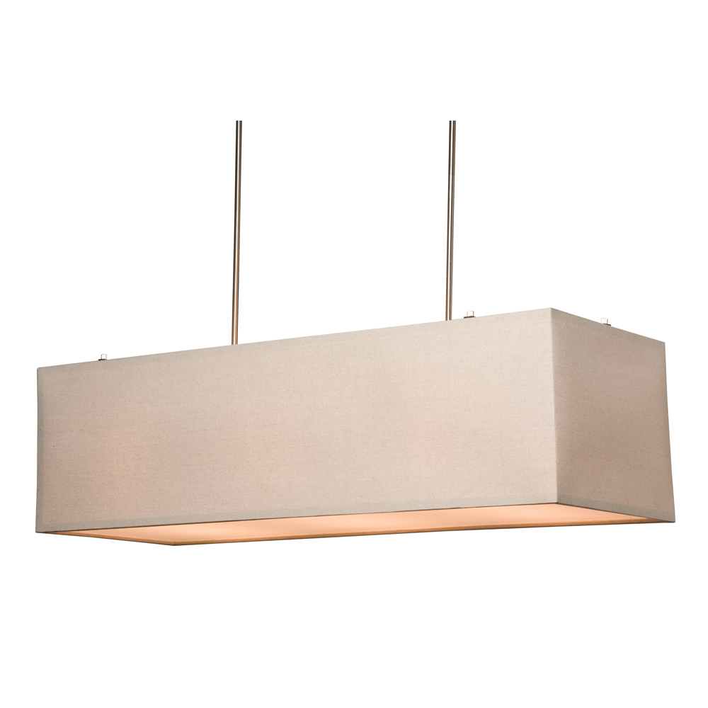 Mercer Street Rectangle chandelier featuring a beautiful Oatmeal Linen Shade, with bottom acid white glass diffuser