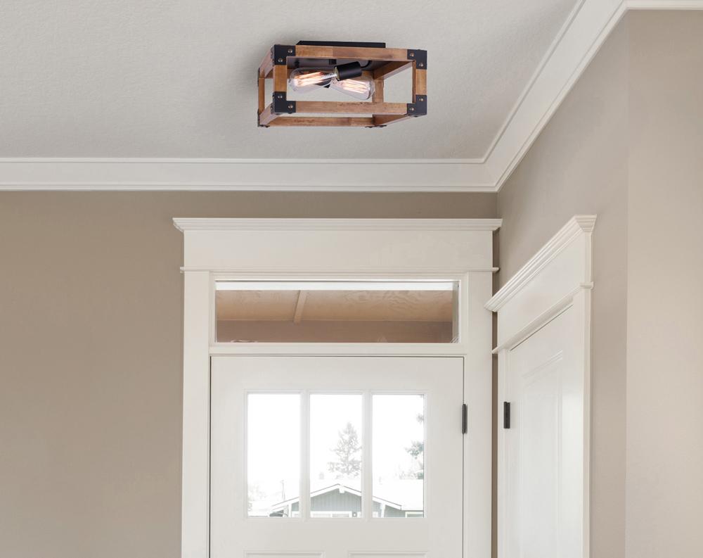 The Moss 2 Light Flush Mount, Wood Finish captures the spirit of nautical theme. A stunning piece that combines Black/Wood and User Replaceable Bulb to create an unforgettable ambiance.