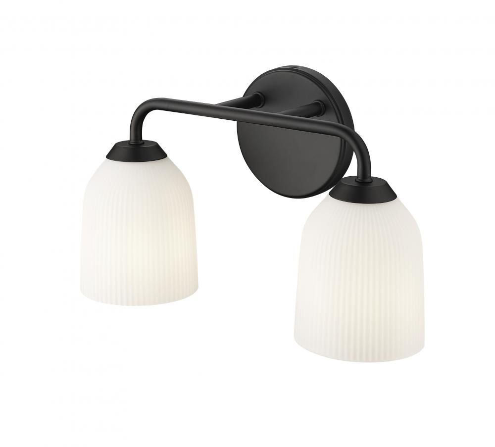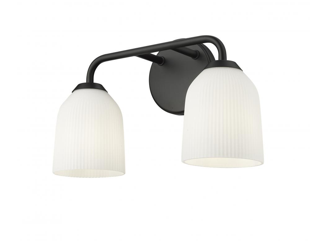 Inspired by the functionality and simplicity of the Craftsman design movement, the Norah Family of vanity lighting creates a radiant addition to any bath while eliminating shadows. ?These 2-, 3-, and 4-light fixtures comprise bell-shaped, ribbed, opal glass globes perfectly balanced with understated and gently curved lines. The collection is finished in either matte black, brushed nickel, or vintage brass.