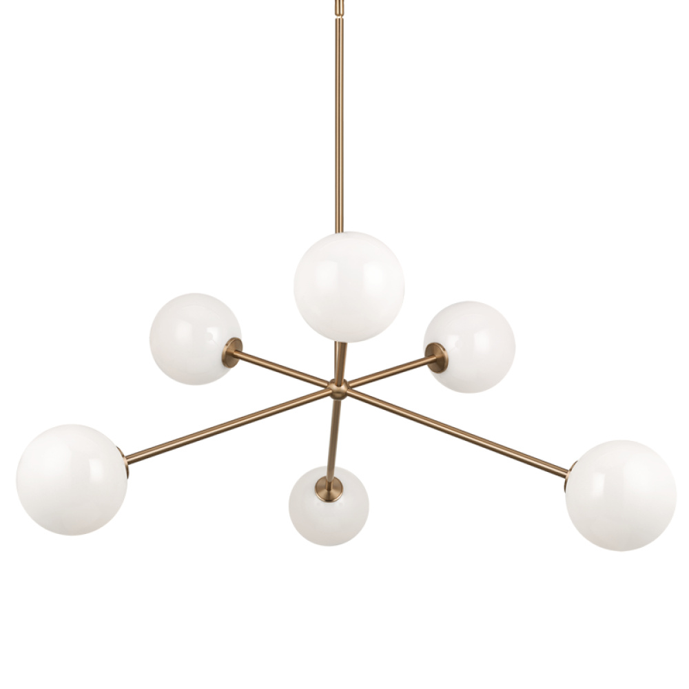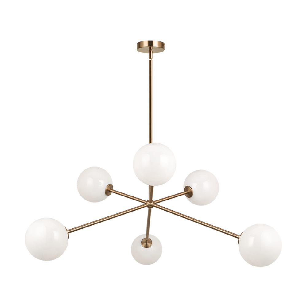 Novo is modern yet classic – available in the form of chandelier, wall sconce, and flush mount. The rods and base are either Aged Gold Brass or Black finish paired with a contrasting Opal Glass. The style is very versatile and will add beauty to multiple rooms.