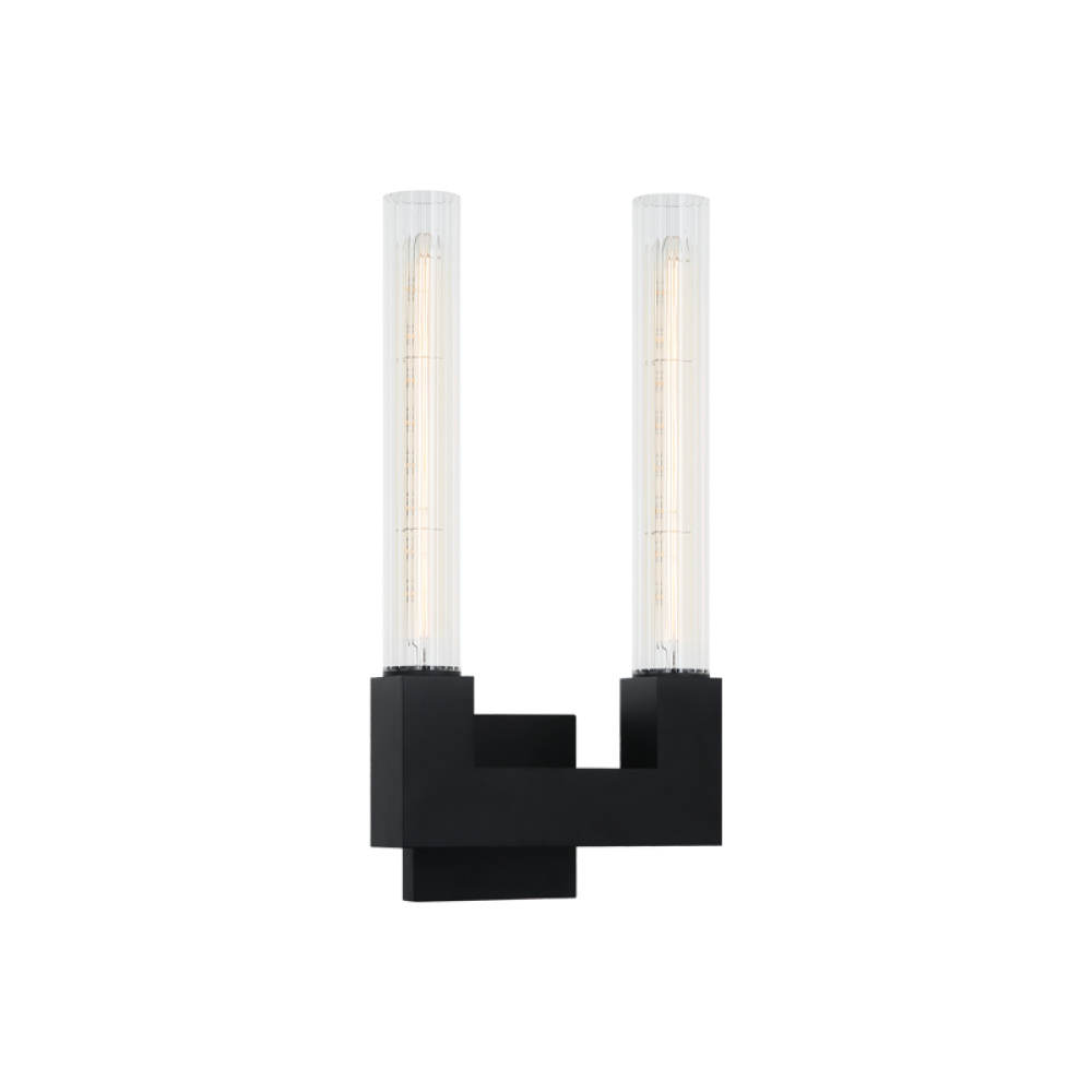 The Odelle wall series is a delicate looking fixture with the small canopy and beautiful ribbed glass. Available in Aged Gold Brass or Black, this attractive fixture will finish off the room in style.