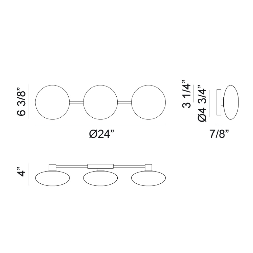 3 LT 24"W "PEARLESQUE" WALL SCONCE -MB-OPAL GLASS