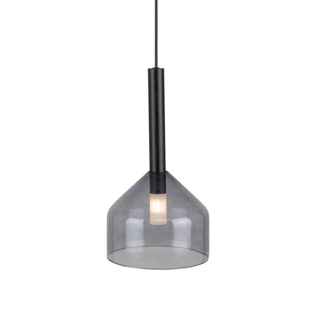 The Kali collection showcases a captivating design, featuring lightly smoked glassware suspended with sleek black wiring. Each glass element has an interior white bulb cover, adding a touch of subtlety to the lighting and creating a soft, ambient glow. Single light pendant shown.