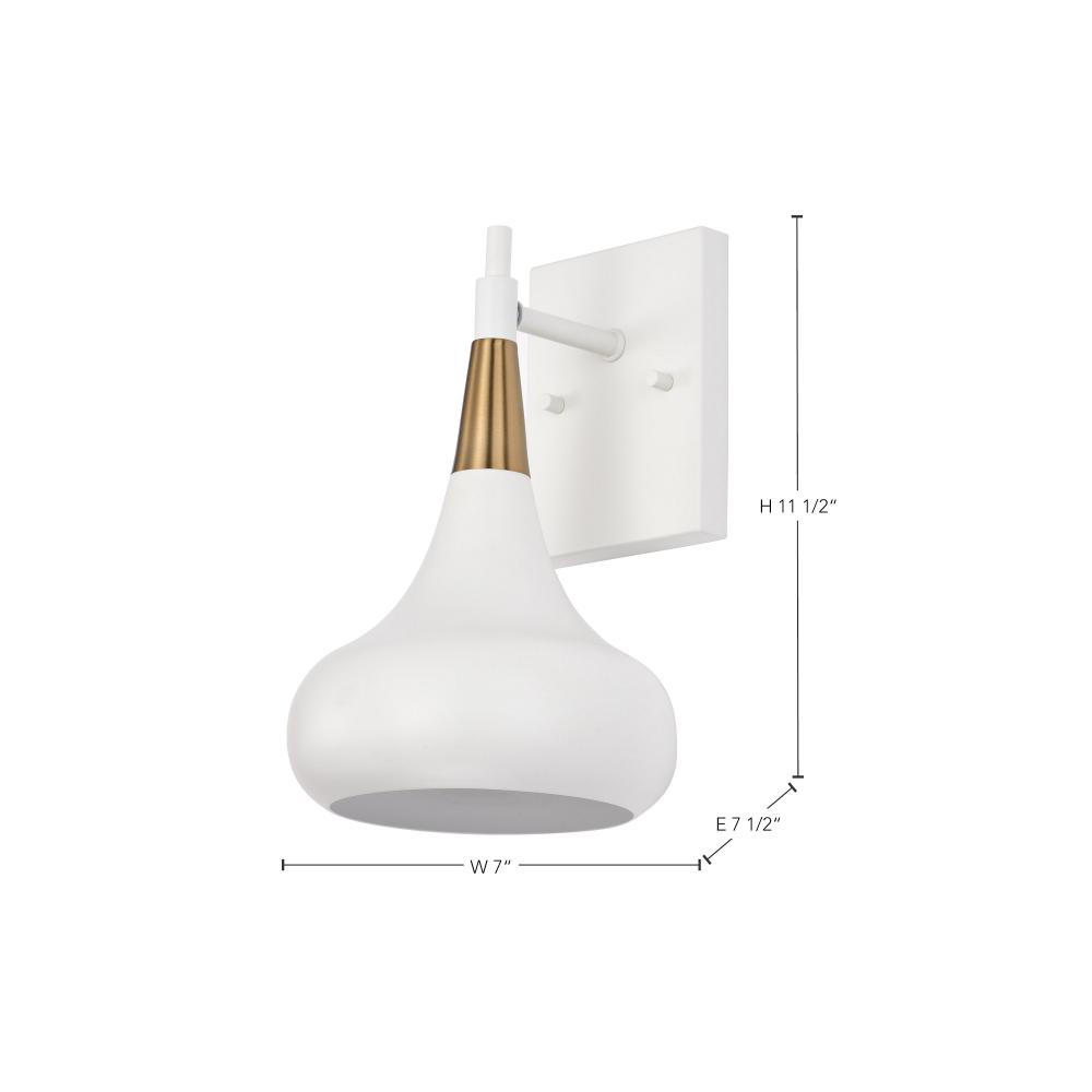 Phoenix; 1 Light; Wall Sconce Matte White with Burnished Brass