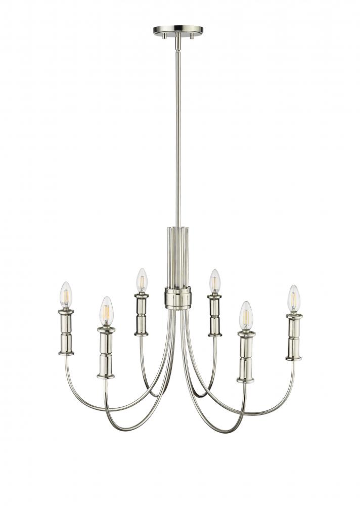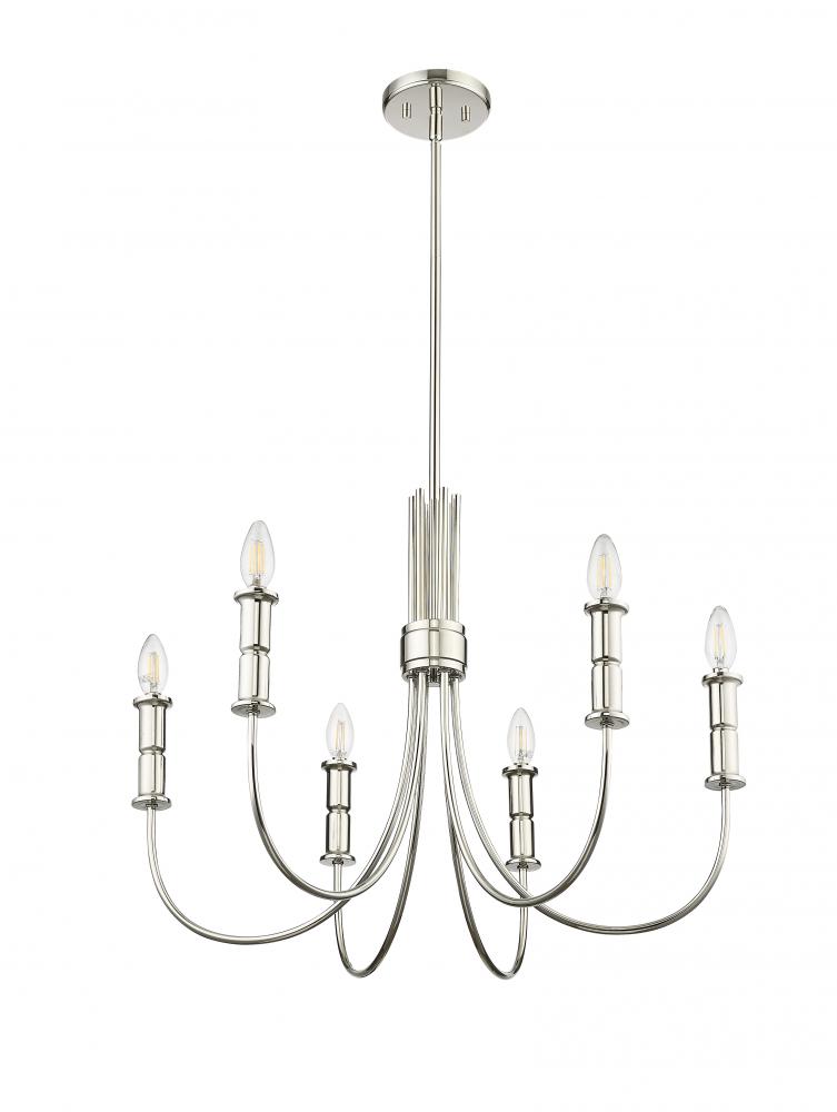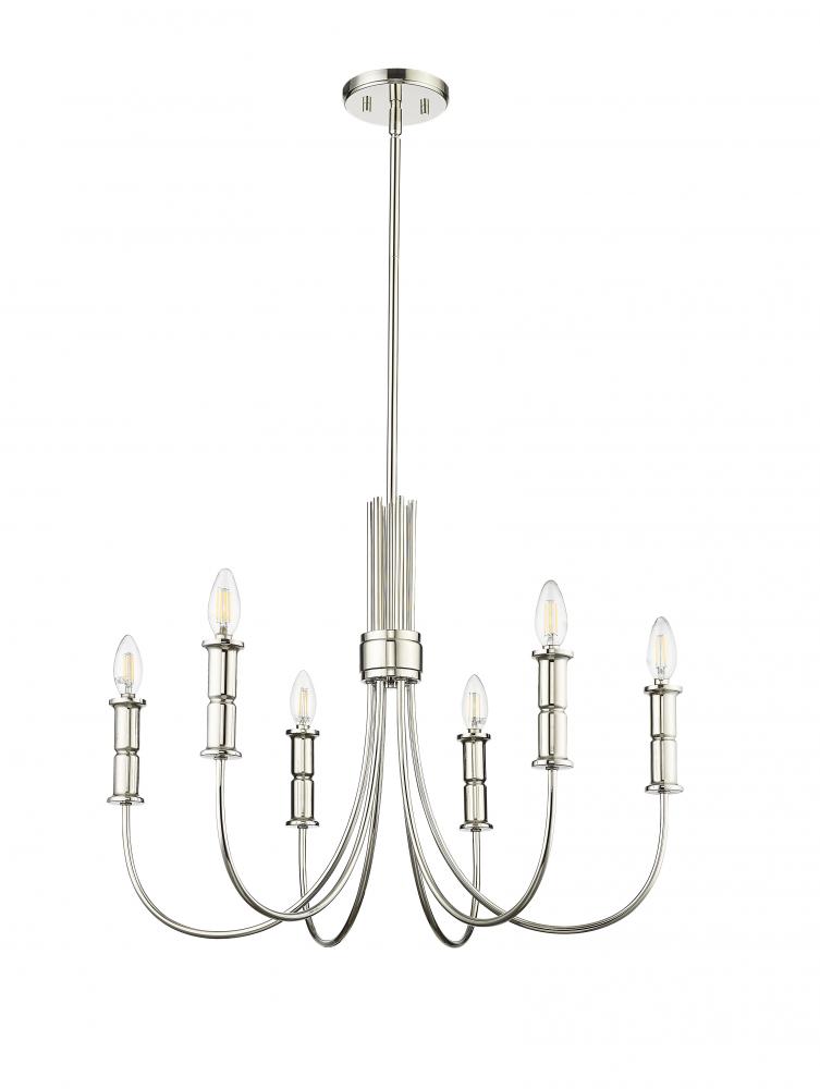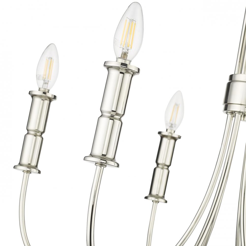 Whether searching for neo-classical design or midcentury modern, with the Potiss Collection of chandeliers, the options are endless. The midcentury line is inspired by the iconic Sputnik chandeliers of the 1960s, while the more classic fixture is reminiscent of early American colonial design. The collection is available in either matte black or polished nickel with 6-light, 8-light, 9-light, and 1 options.