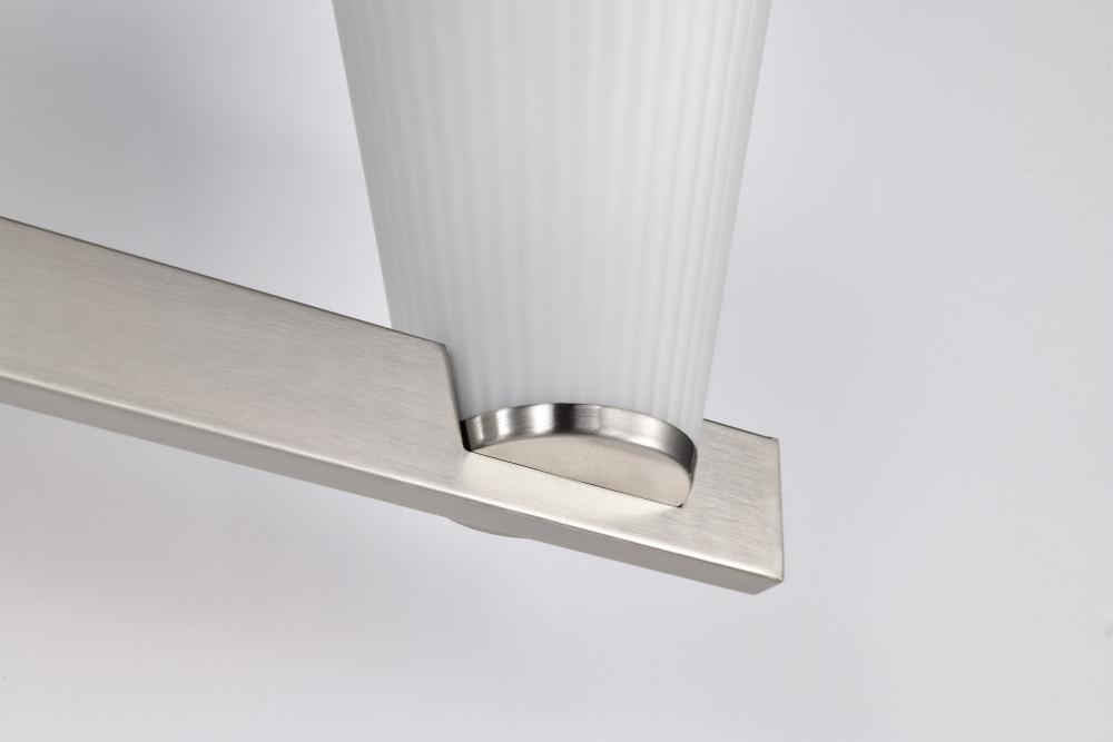 Indulge in the glamour of the Royale 60-8723 three light vanity fixture, where sleek Art Deco silhouettes meet modern refinement. The satin white pleated glass adds texture and sophistication, diffusing light with a soft, radiant glow. Finished in burnishe