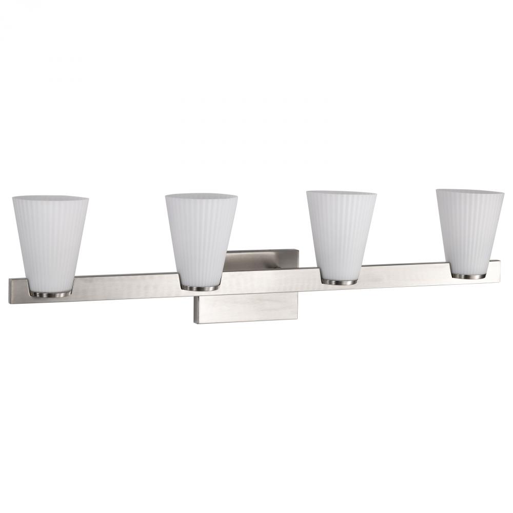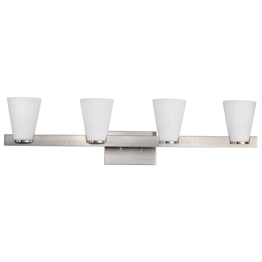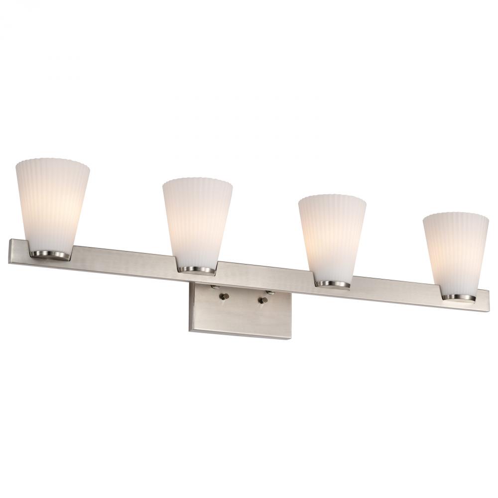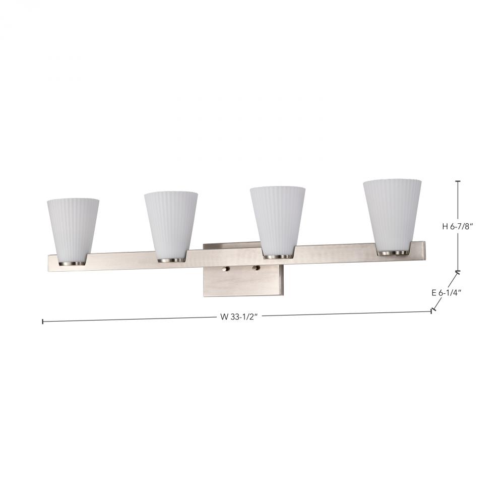Indulge in the glamour of the Royale 60-8724 four light vanity fixture, where sleek Art Deco silhouettes meet modern refinement. The satin white pleated glass adds texture and sophistication, diffusing light with a soft, radiant glow. Finished in burnished
