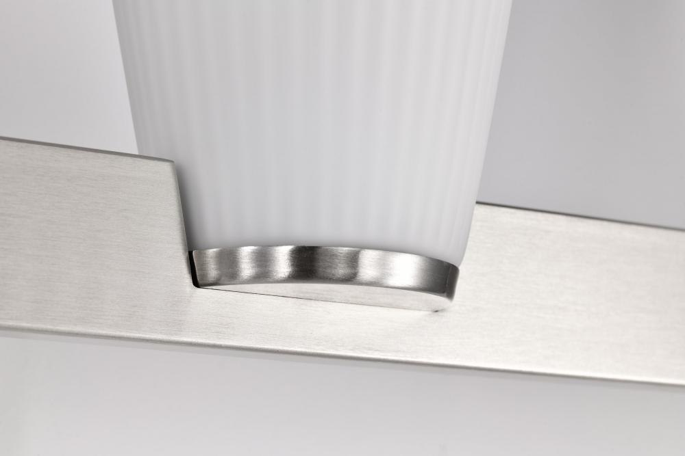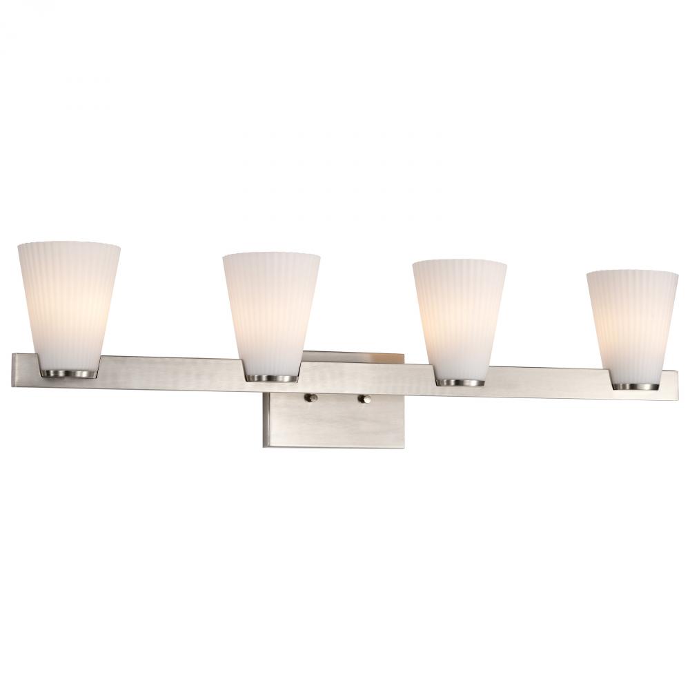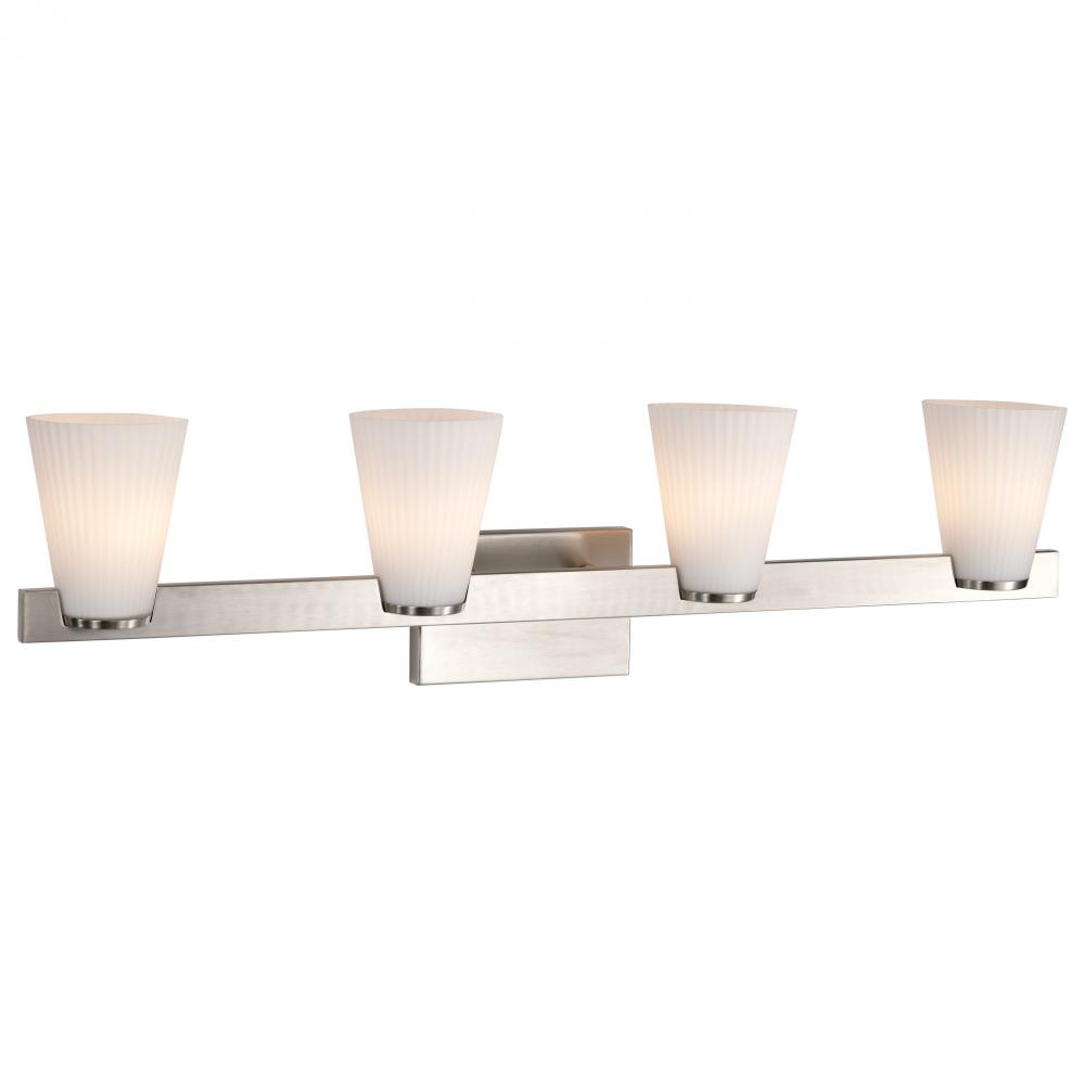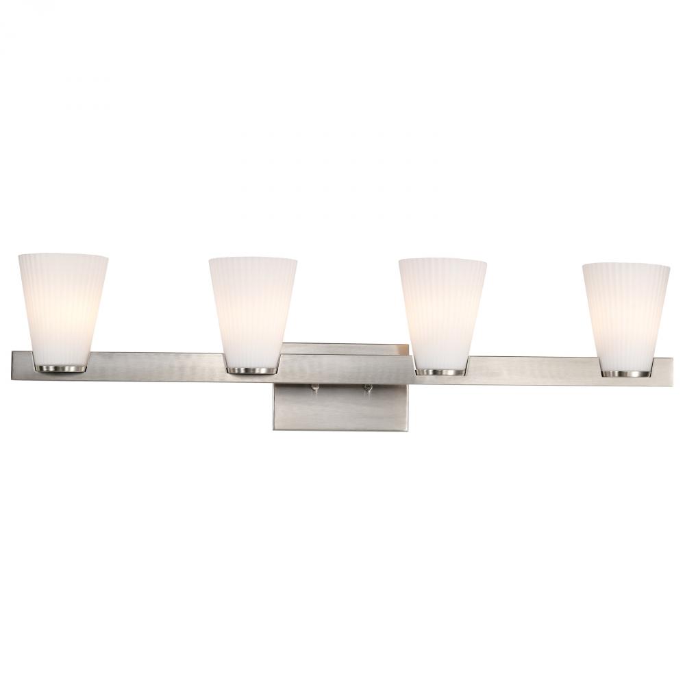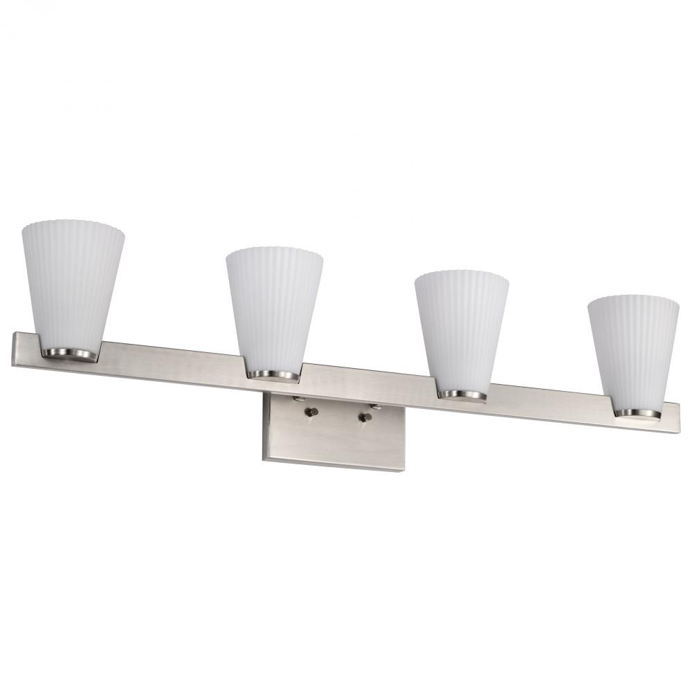 Indulge in the glamour of the Royale 60-8724 four light vanity fixture, where sleek Art Deco silhouettes meet modern refinement. The satin white pleated glass adds texture and sophistication, diffusing light with a soft, radiant glow. Finished in burnished