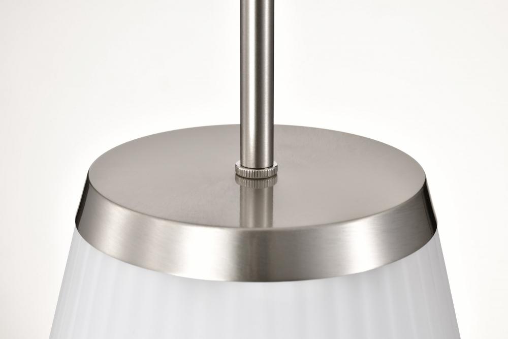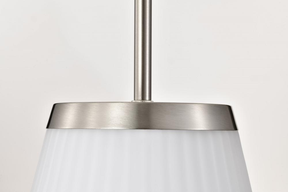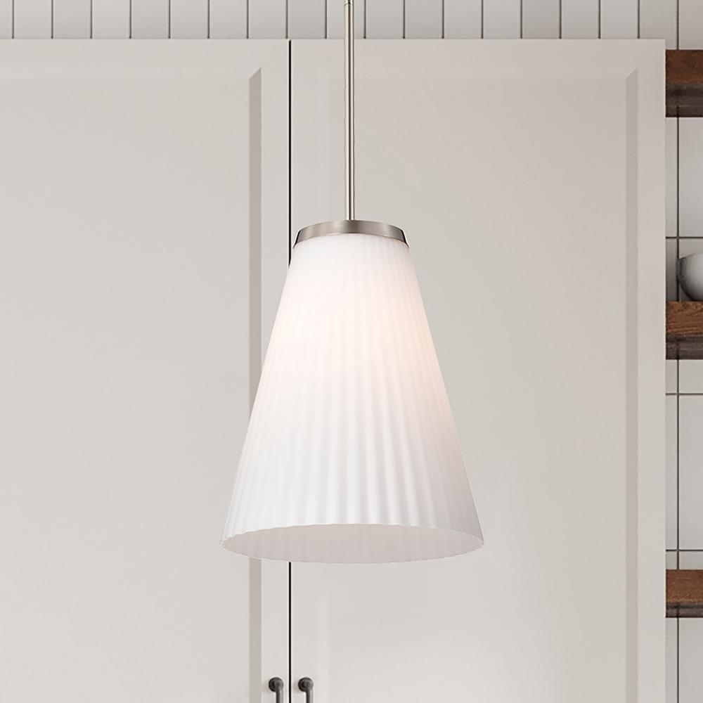 Royale; Large Pendant; Brushed Nickel Finish; Ribbed White Glass