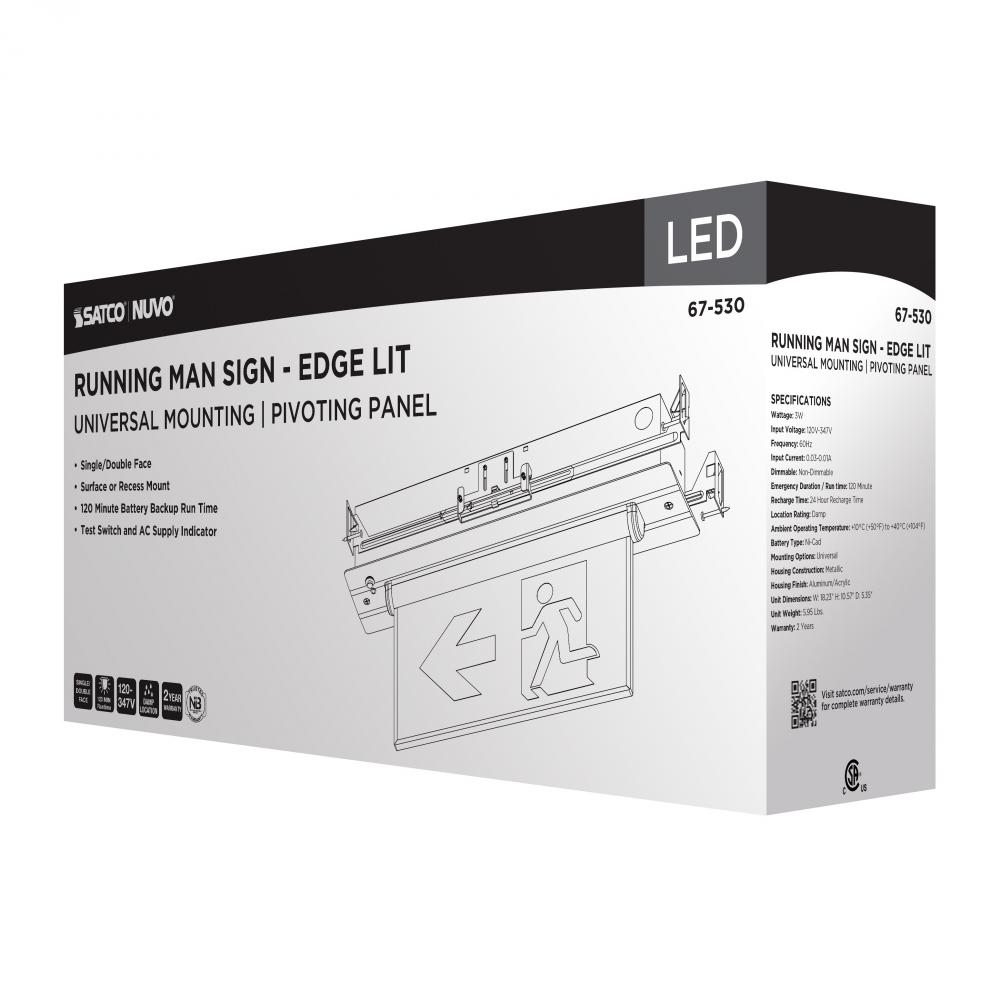 Keep your building safe and secure with the SATCO NUVO LED Running Man Signs. Choose single or dual-face installation and customize the pictogram to fit your needs. The unique pivoting head on this model allows for optimal positioning based on your locatio