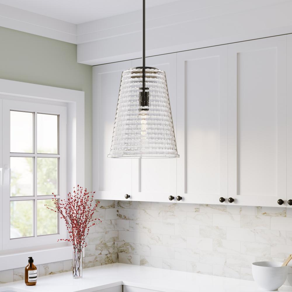 The Saben Family of lighting is pure glamour, and an excellent choice for any interior scheme from transitional to Art Deco. Options include pendant, vanity, sconce, and semi-flush mount fixtures. The basketweave textured, clear glass shades create a crystal-like effect against the sleek designs available in matte black, modern gold, polished nickel, brushed nickel, or vintage brass.