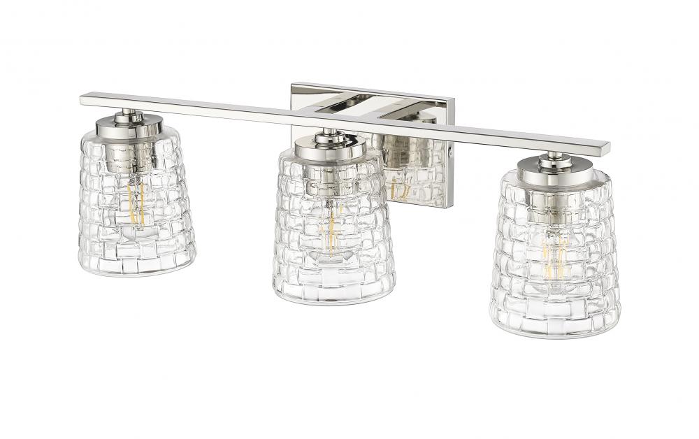 The Saben Collection of vanity and pendant lighting is pure glamour, perfect for any interior scheme from transitional modern to Art Deco. The basket-weave textured, clear glass shades create a crystal-like effect against the sleek, understated lines of the elegant fixtures, which are available in matte black, modern gold, polished nickel, brushed nickel or vintage brass. The overall result is a playful and sparking display of light.
