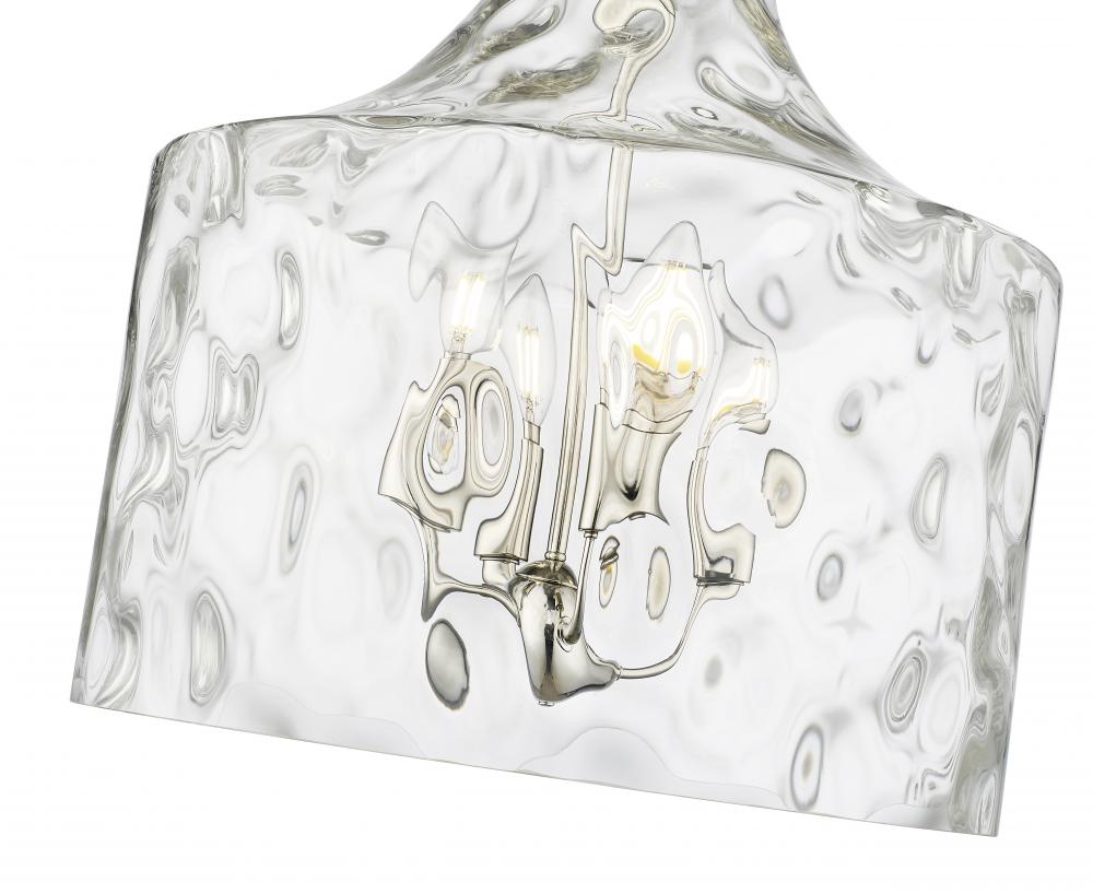 The Santorini Family of pendant lighting is distinguished by delicately suspended, handblown-style water glass shades, creating a playful dappled lighting effect. Available as 1- and 4-light options, the fixtures are finished in matte black, modern gold, or polished nickel. A unique design statement, these pendants complement any design scheme from ultra-modern to midcentury.