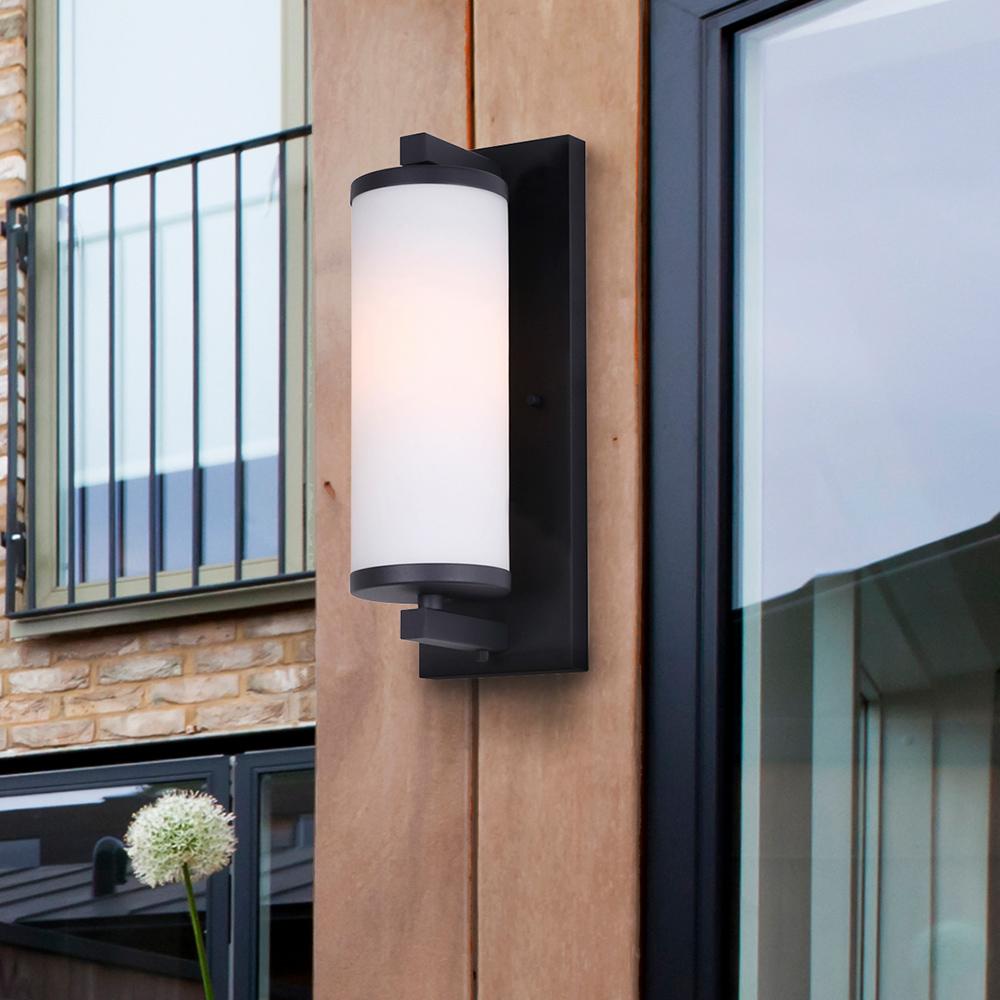 The Seager IOL600BK is a sophisticated single-light outdoor fixture in Black (Sand) with flat opal glass. It supports a 60W Type A bulb and measures 4.75 inches wide, 14.5 inches high, and 5.75 inches deep, making it perfect for illuminating and enhancing various outdoor settings.