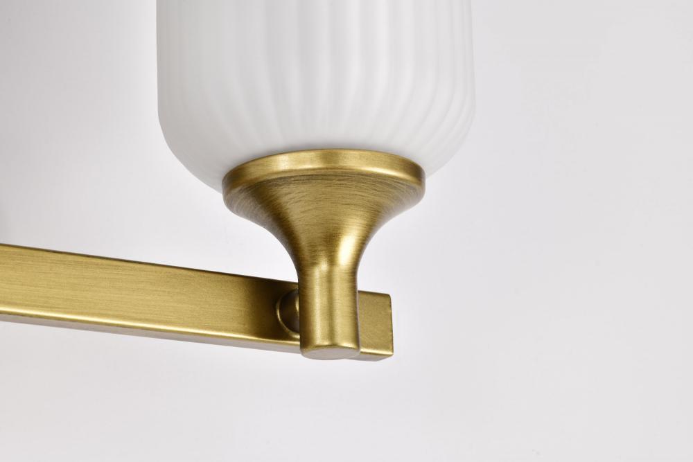 Solara; 4 Light Vanity; Natural Brass Finish; Frosted Ribbed Glass